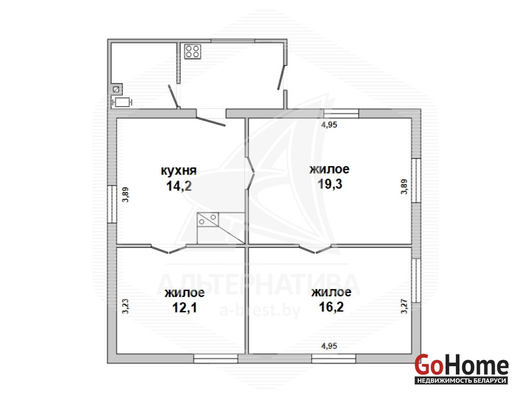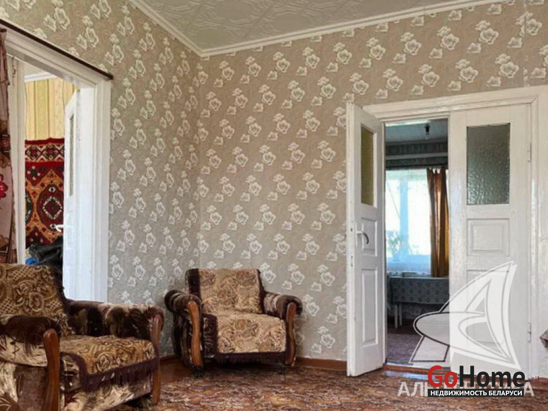 Жилой дом в Брестском р-не. 1963 г.п. 1 этаж. Общ.СНБ - 63,8 кв.м, общ.- 62,4 кв.м, жил.- 48,2 кв.м, кух.- 14,2 кв.м. 3 комнаты, высота потолка - 2,80 м.