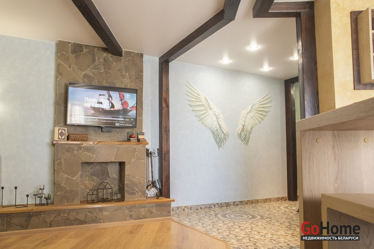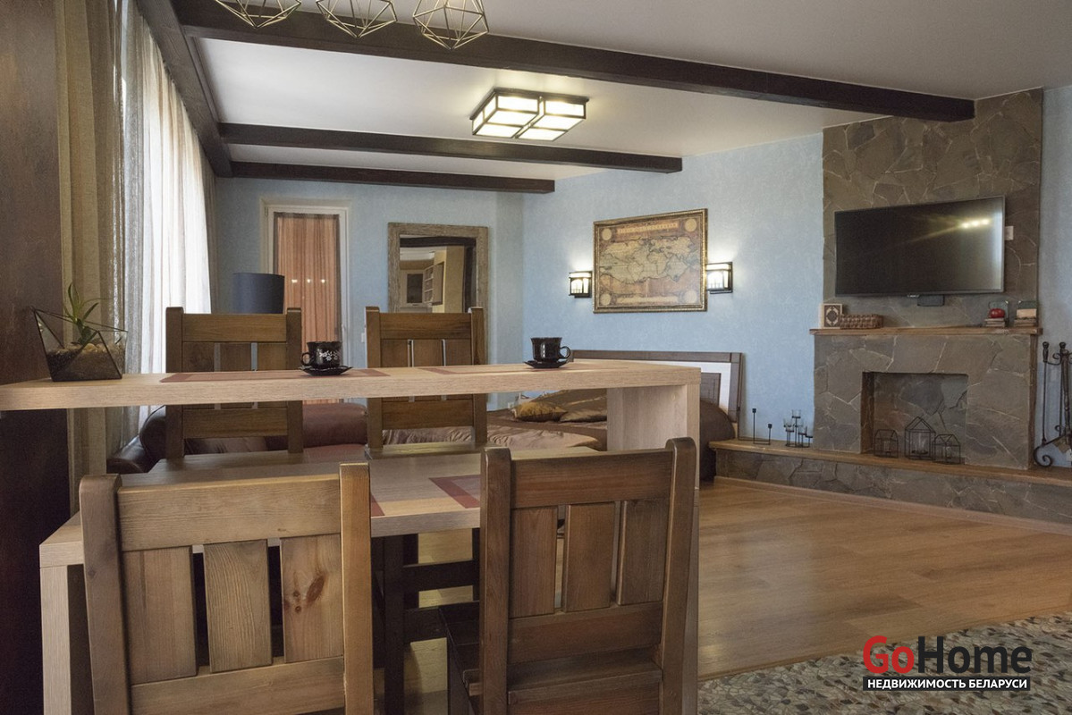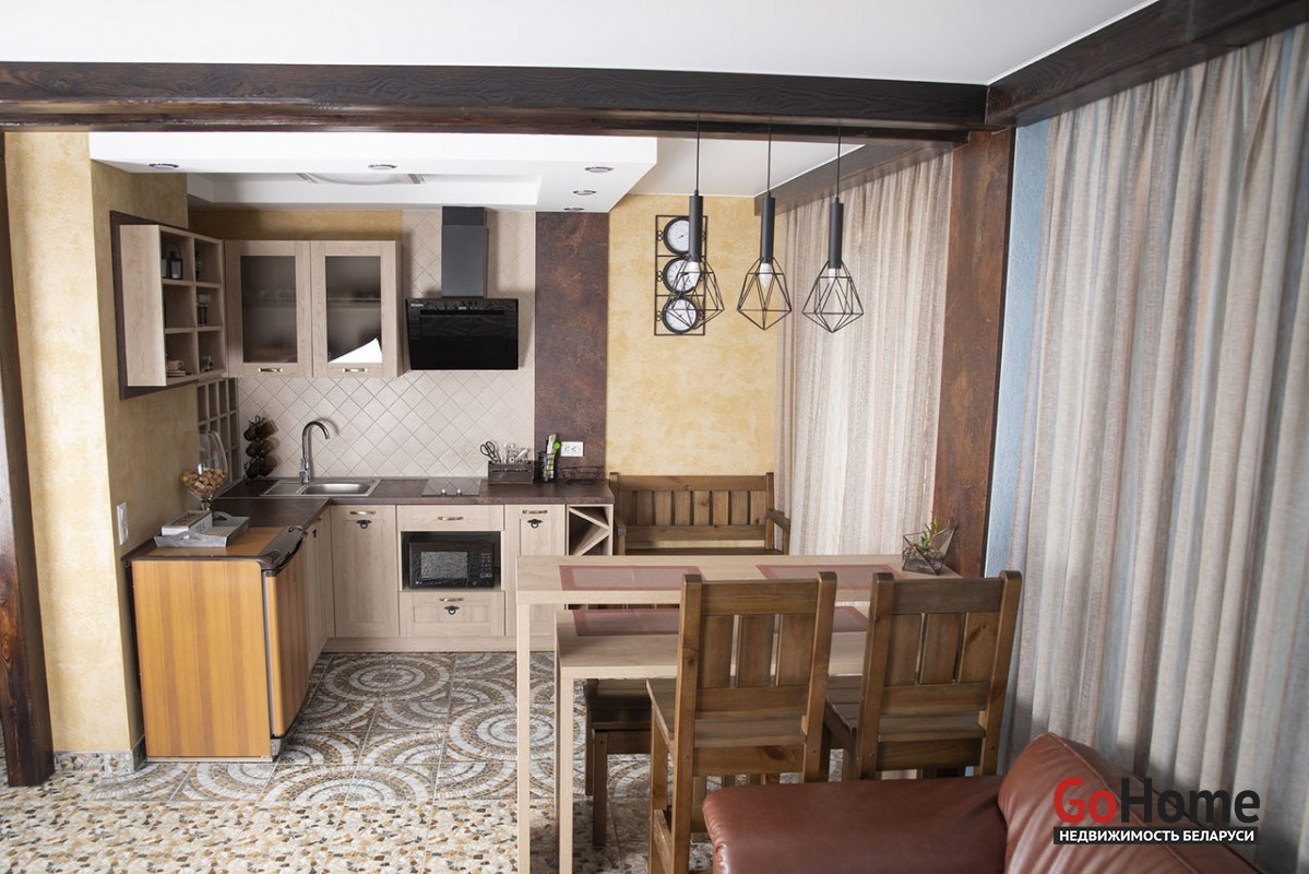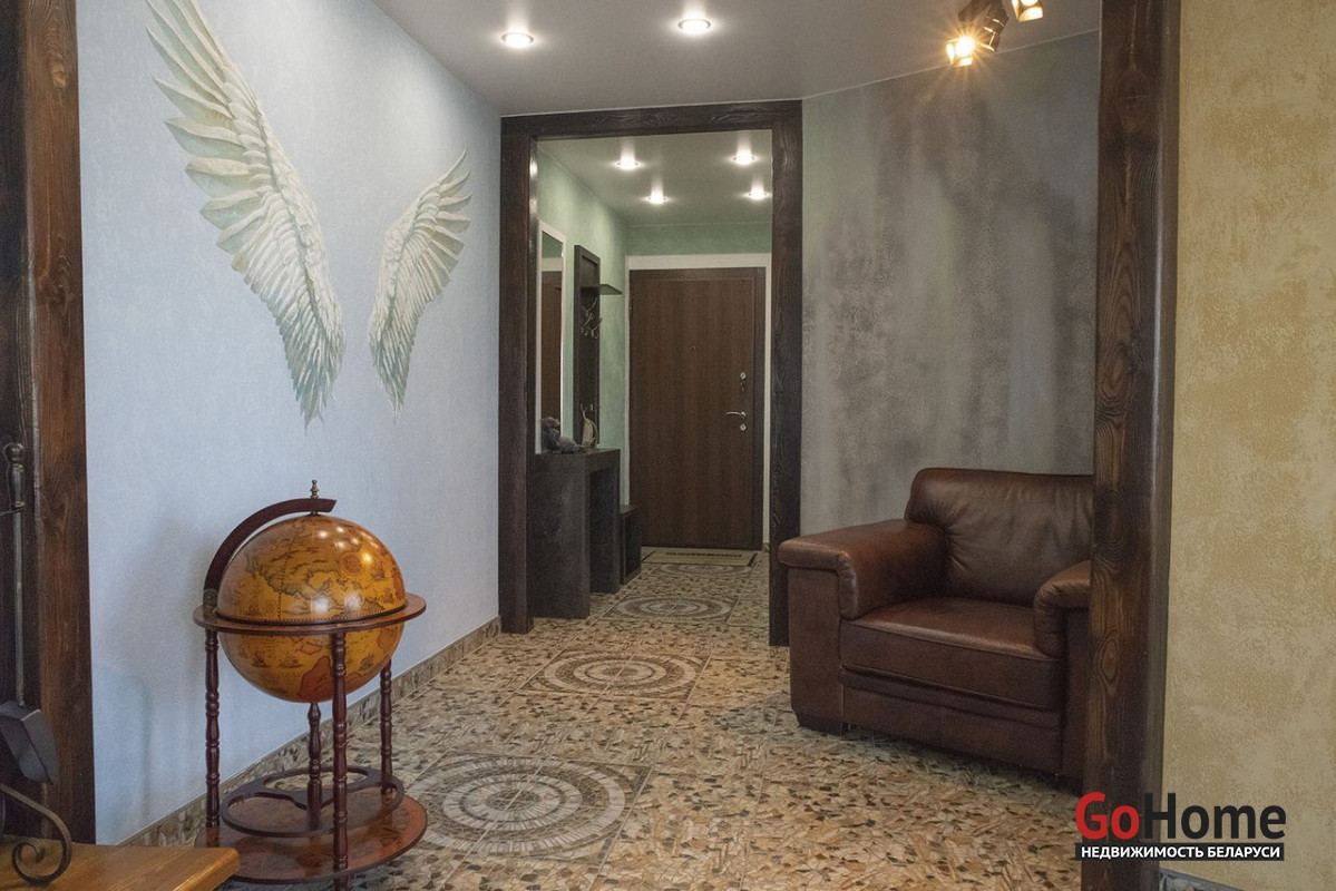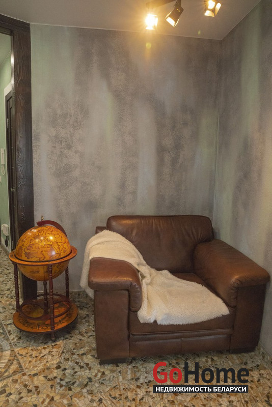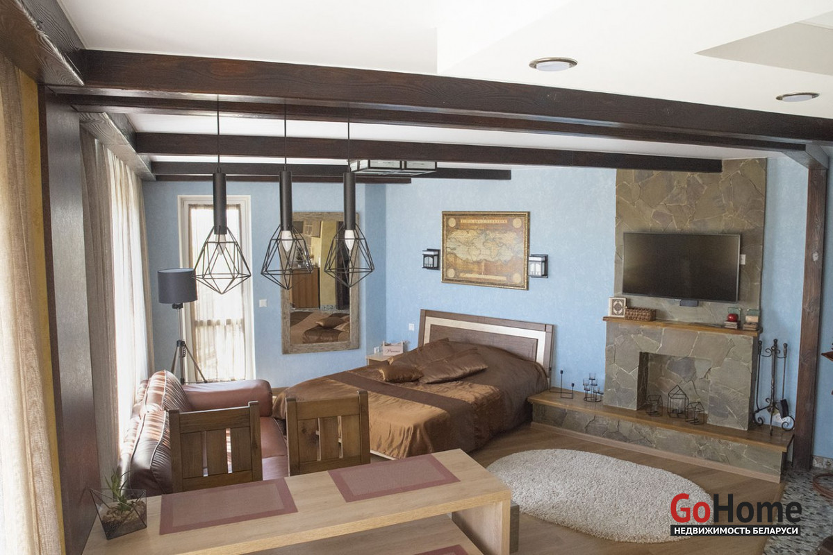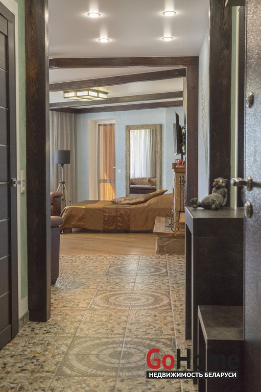 Здесь чувствуется дизайнерский стиль, ощущение комфорта и тепло домашнего уюта. На стены нанесена Венецианская штукатурка. Внушительных размеров кровать с ортопедическим матрасом и свежим постельным бельем, обещает приятные сновидения, крепкий, здоровый сон, бодрость и уверенность в себе с утра. Диван и кресло из натуральной кожи.