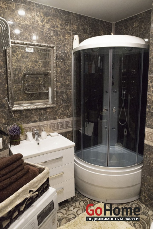 Ванная комната представлена душевой кабиной с системой "тропический ливень", который дарит необыкновенные ощущения, современной, свежей сантехникой и совмещенным санузлом. Свежие полотенца и комплект гигиенических, косметических средств - прилагаются.