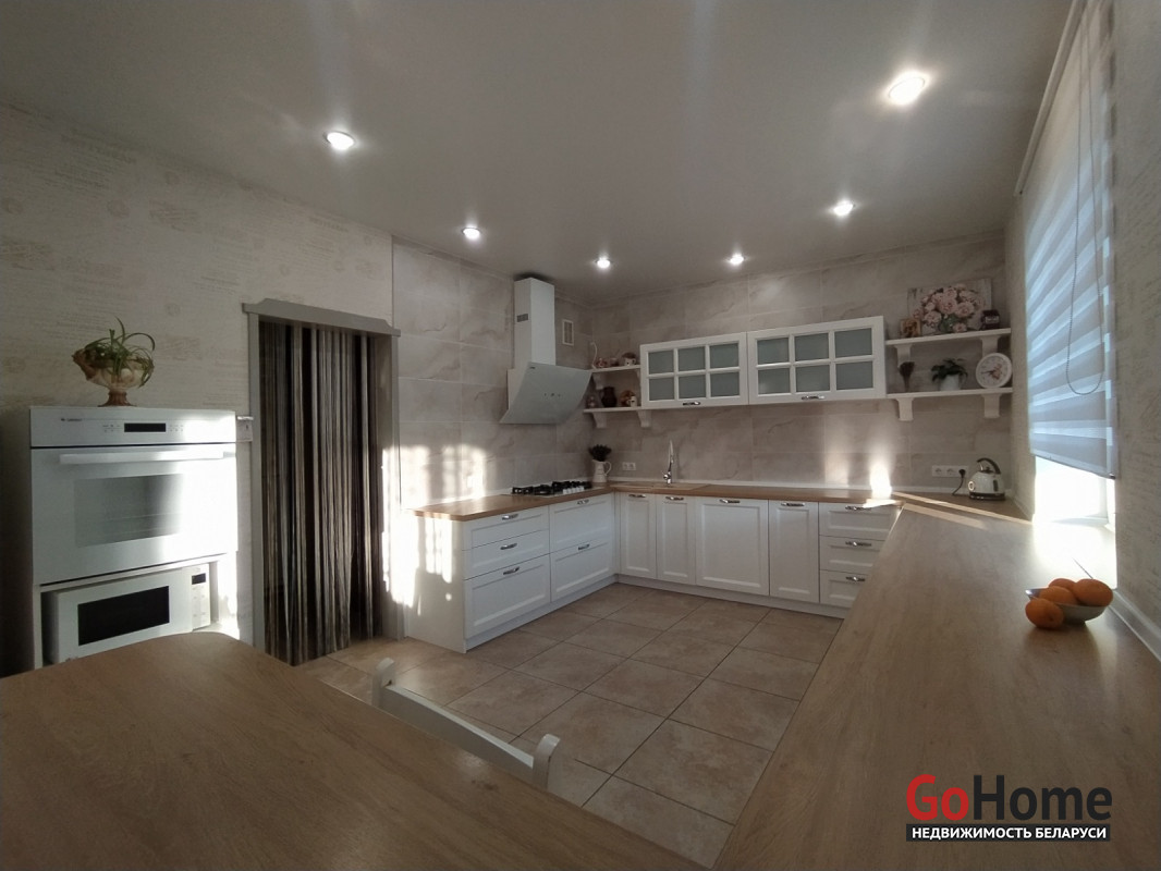 В жемчужине Полесья, во славном Петриков-граде продается тёплый уютный дом в самом живописном его уголке. Удобный участок: заезд с двух сторон, соседи только с одной стороны. На участке есть погреб, теплица, летняя кухня с печкой и хозблоком. Дому два года. Продается с мебелью. В доме просторная гостиная, две спальни и кабинет, который можно переделать в ещё одну спальню, кухня 16.5кв.м, кладовая, гардеробная, котельная. На полу в спальнях ламинат, в остальном доме керамогранит, теплый пол. В кухне есть встроенный электрический духовой шкаф, газовая варочная панель, посудомойка фирмы Bosch, встроенная мебель по индивидуальному проекту ручной работы с фурнитурой Blum. Два санузла. Газовый котёл Bosch. Водонагреватель на 260л. Потолки в доме натяжные. Окна ПВХ. В гараже секционные ворота, ворота во двор откатные. Тихое место. Дружелюбные, интеллигентные соседи.