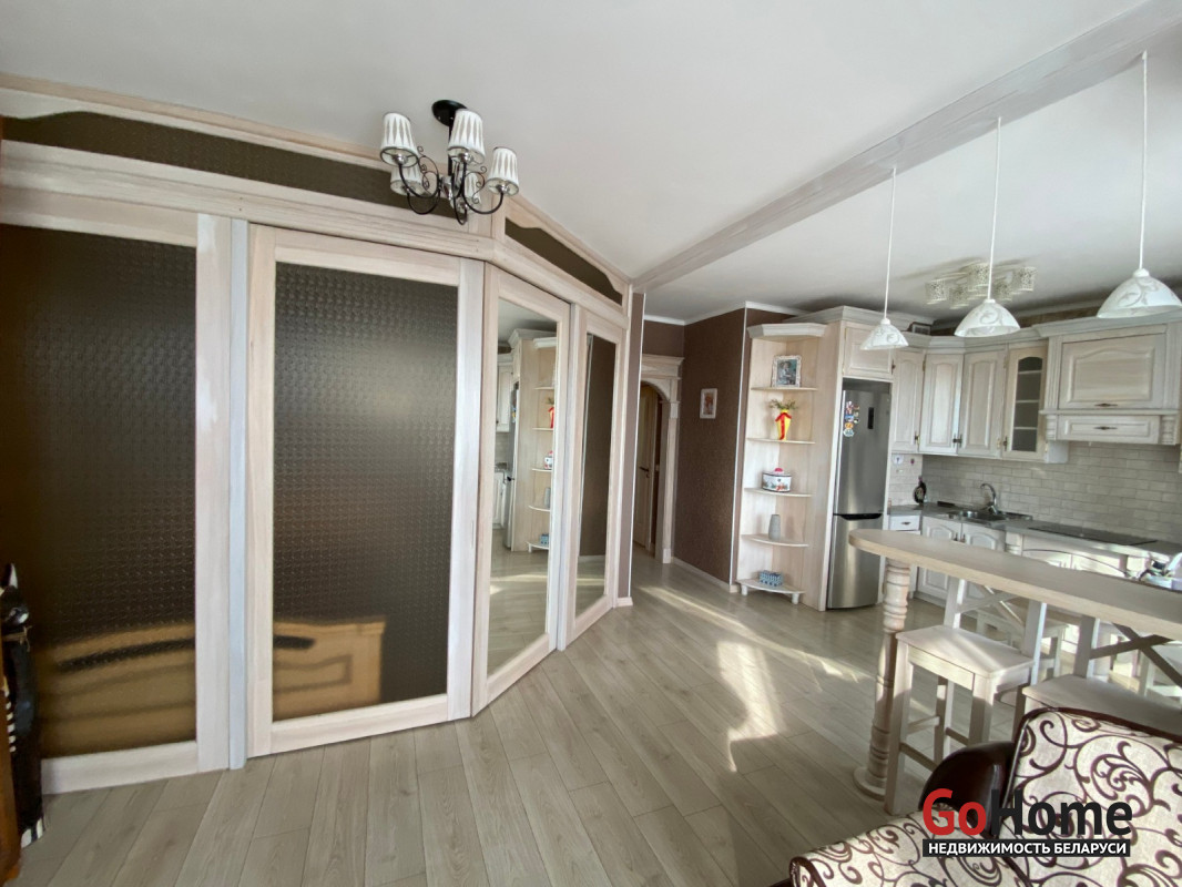 Продаётся просторная квартира в стиле "Прованс" возле метро Грушевка. Площадь по СНБ 47 м2. Продаётся с мебелью и бытовой техникой. Дизайнерская отделка выполнена в светлых тонах полностью из натурального дерева (массив дуба, массив ясеня). Напольное покрытие: ламинат влагостойкий (Германия) с самым лучшим 33-м классом нагрузки и качественной листовой клеянной древесной подложкой (ванная комната оборудована плиткой). Имеется отдельно обустроенный гардероб со встроенными шкафами, полками, шуфлятками и стеллажом для обуви. Зонирование пространства произведено с помощью деревянных зеркальных перегородок.