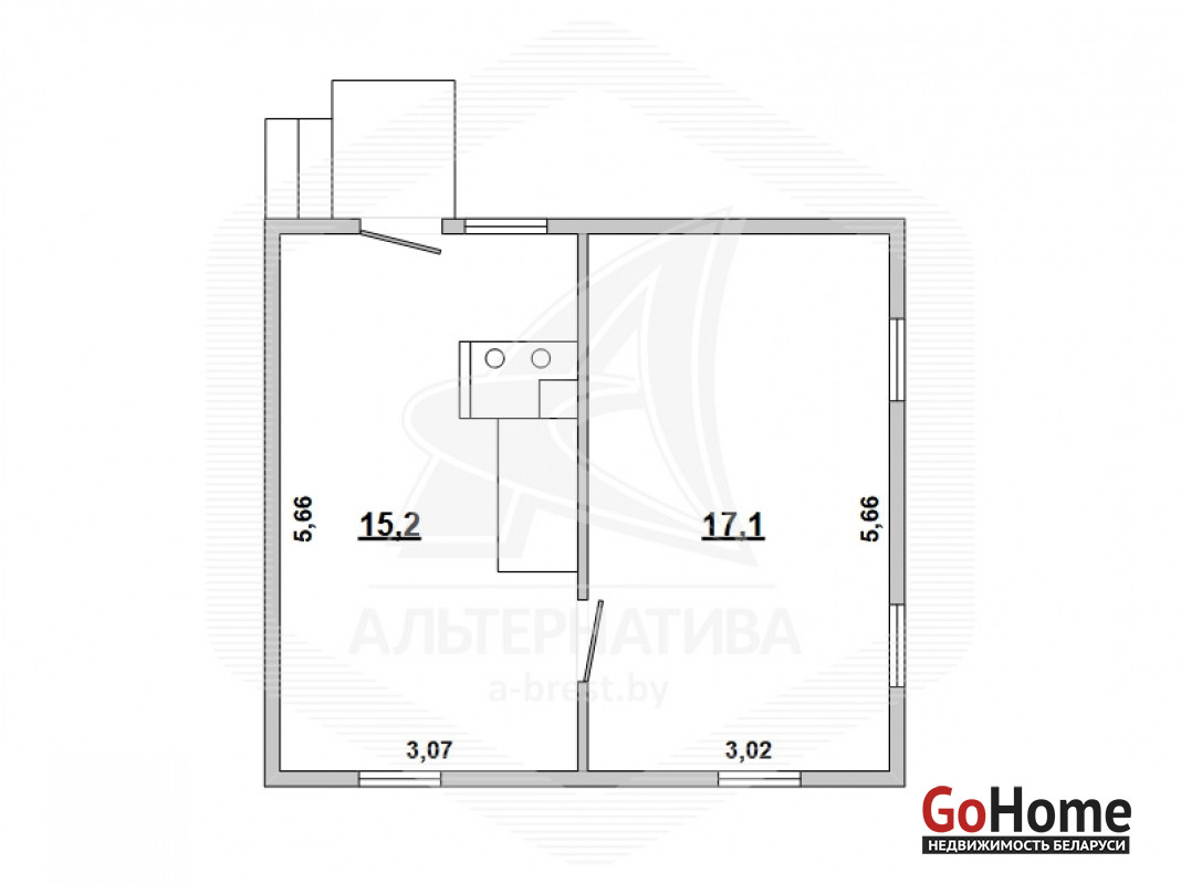 1-комнатная, 66.3/45/11.7 м2, (18.7 соток), 1 эт., 1960 г.