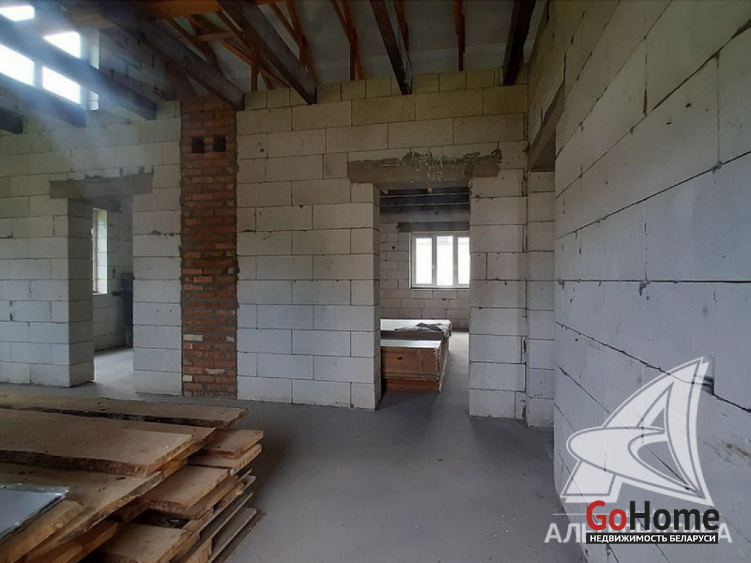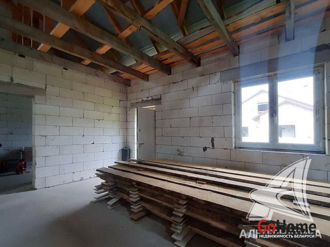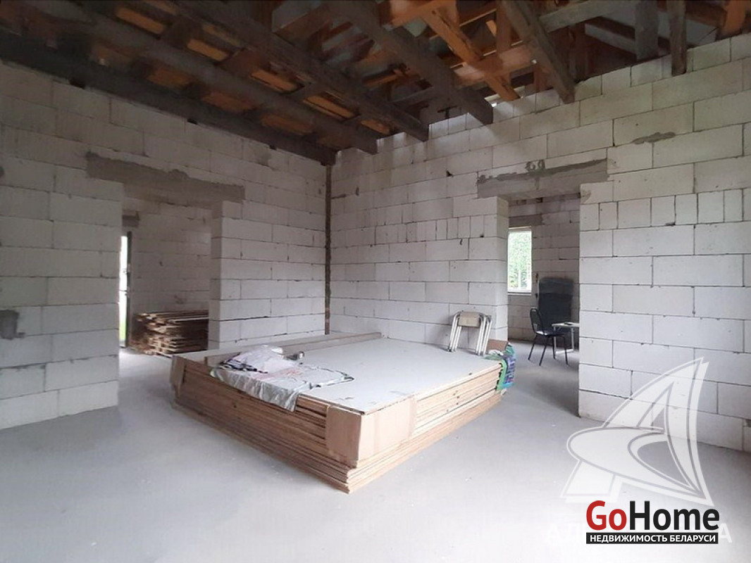 Коробка жилого дома в Жабинковском р-не. 2017 г.п. 1 этаж, мансарда. Общ.СНБ - 108,0 кв.м, общ.- 108,0 кв.м, жил.- 73,2 кв.м, кух.- 11,0 кв.м. 3 комнаты, высота потолка - 3,0 м.