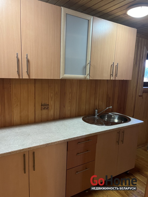 Продам одноэтажный дом (гостиная+кухня+моечная+парная) с большим участком с живописным видом на реку Днепр в д. Нижняя Олба. Дом построен из оцилиндрованного бруса. Крыша - металлочерепица.