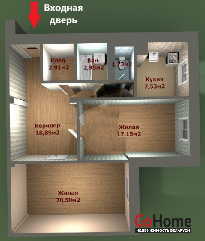 Общая площадь 71,66 м2, жилая площадь 37,65 м2, состоит из 2 раздельных комнат (20,50 м2, 17.15 м2,). Кухня площадью 7,53 м2. Раздельный санузел. Кладовка. Окна (стеклопакеты ПВХ) выходят во двор дома. Высота потолков 2,97 м. Лифт. Двойная входная дверь. Две квартиры на лестничной площадке. Сделано наружное утепление стен по периметру квартиры.