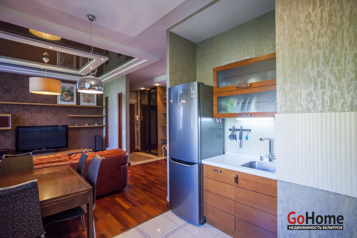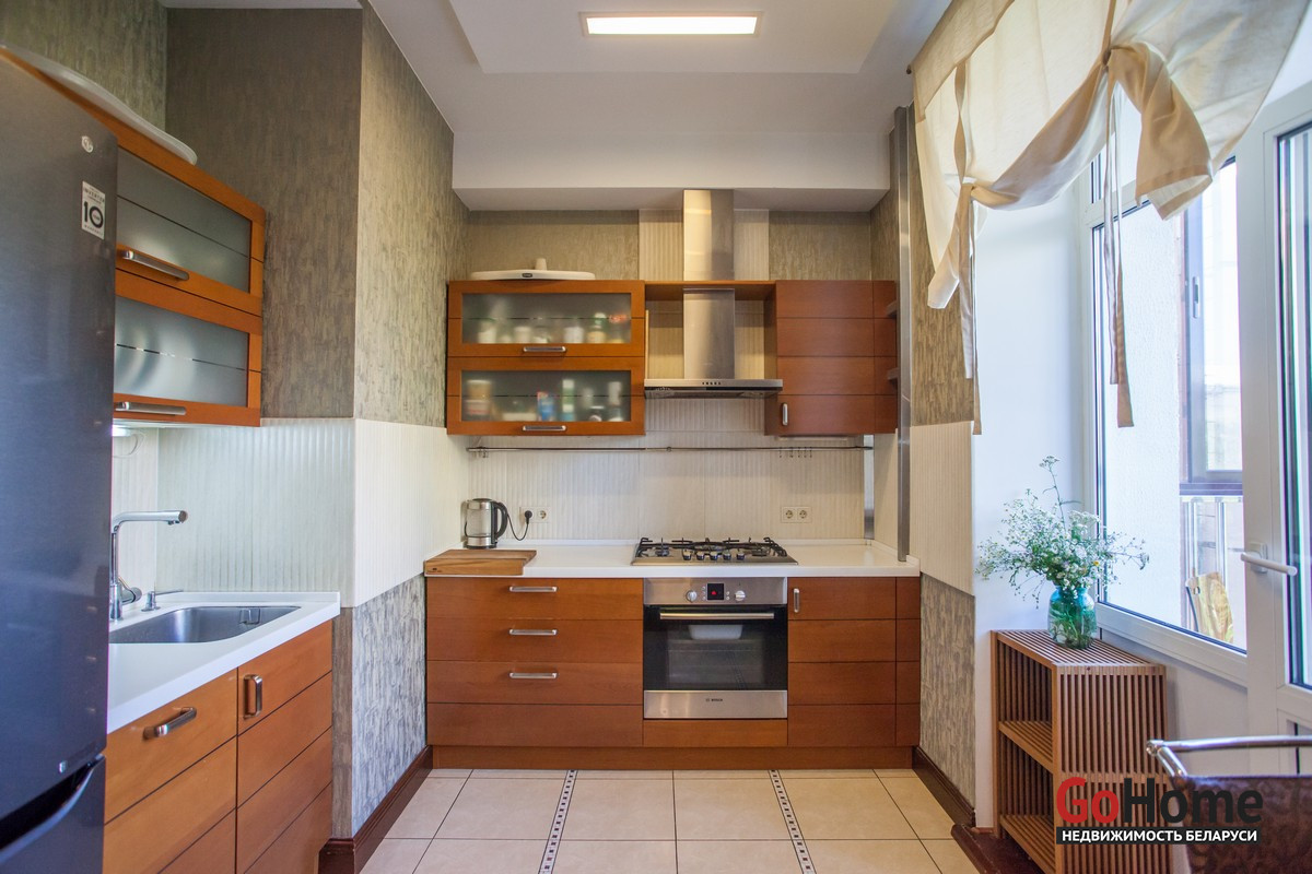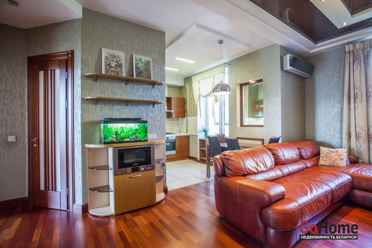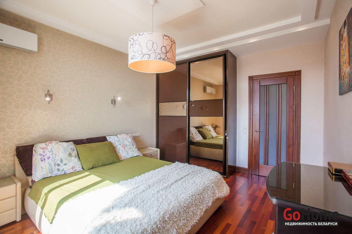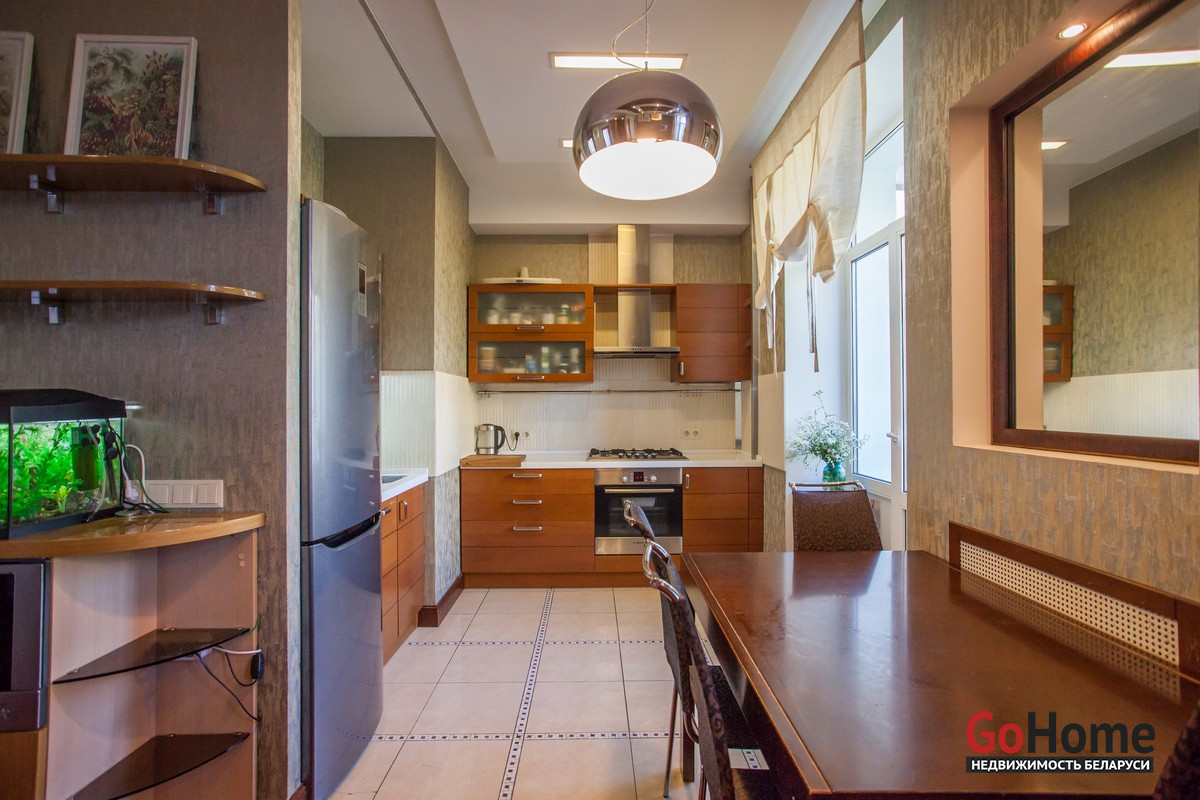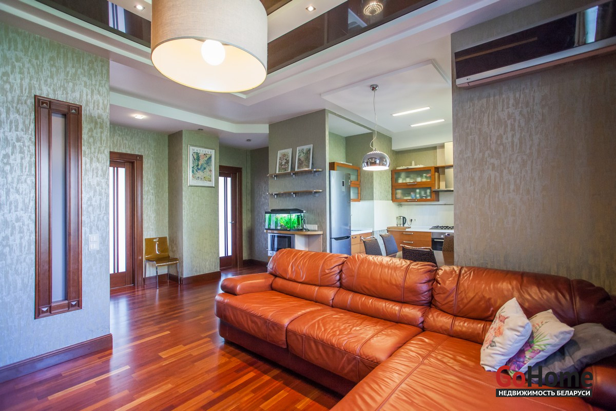 Продается 3-х комнатная квартира по улице Ульяновская. Квартира с хорошей планировкой и высокими потолками вблизи р.Свислочи. В квартире удобная планировка: кухня-столовая совмещена с гостиной, совместный санузел с большой ванной и отдельной душевой кабиной. Имеются два балкона, один - застеклён. Во всех комнатах стеклопакеты и кондиционер.