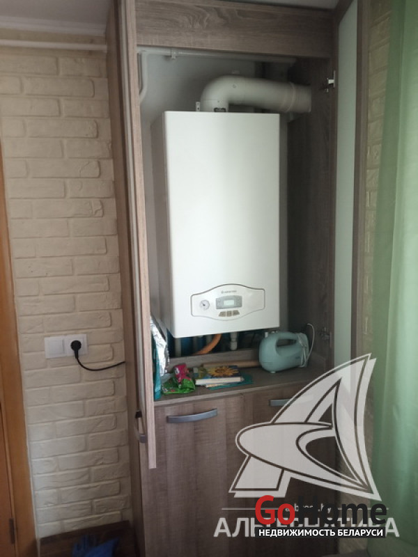 Коммуникации: отопление - газовый котел, газ - централизованный (в доме), водоснабжение - централизованный водопровод, электричество - централизованное, канализация - автономная.