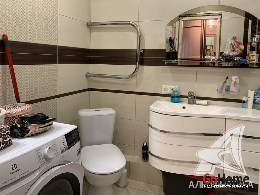 1-комнатная квартира, г. Брест, ул. Фомина, 2016 г.п., 3 / 16 ж/б каркас + блок, 40,3 / 37,4 / 17,2 / 9,7, санузел совмещенный, лоджия застеклена, стеклопакеты, потолки - снежка, полы - ламинат и плитка с подогревом (в кухне, в коридоре), декоративная отделка штукатуркой, в санузле современная плитка, акриловая ванна, домофон. Встроенный кухонный гарнитур (дуб), варочная панель, духовой шкаф, шкаф-купе, стиральная машина по договоренности. Чистый подъезд. Два грузопассажирских лифта. Система видеонаблюдения. Во дворе игровая детская площадка, парковка для автомобилей. Лот - 232683