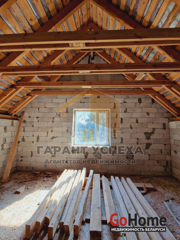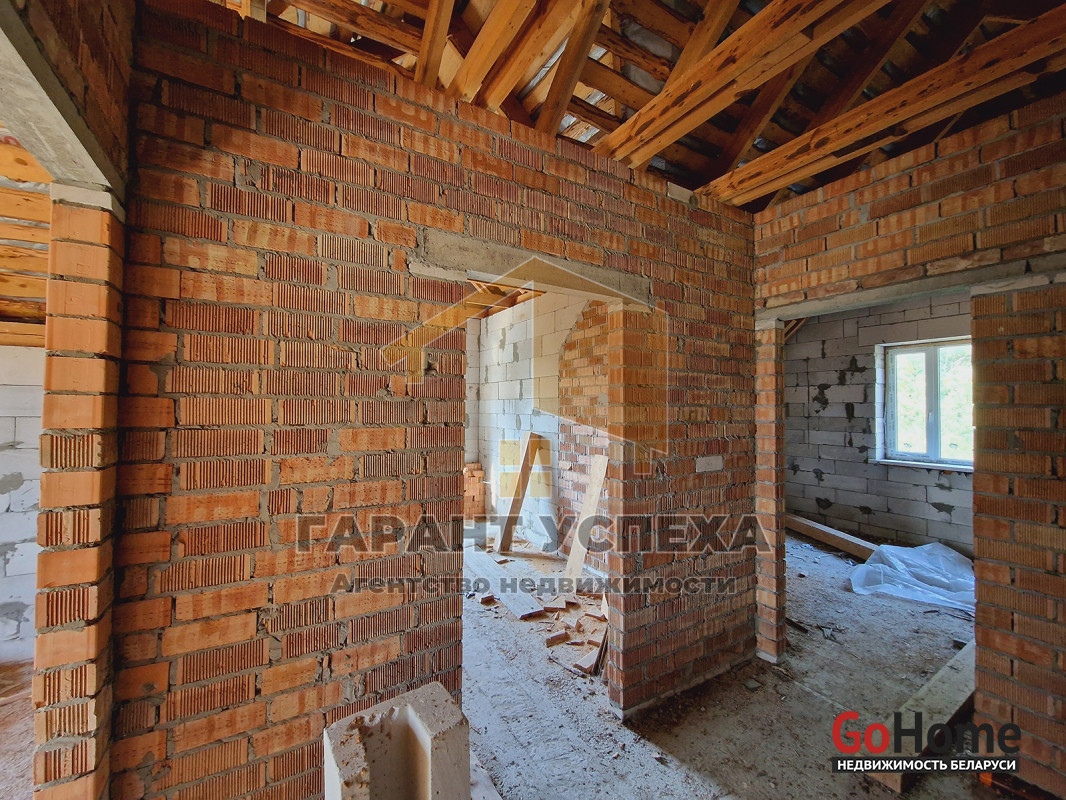Строение на стадии готовности: цокольный этаж - 80%, мансарда – 47% законсервировано. Коттедж состоит из цокольного, основного и мансардного этажа. Стены из блока 40 см, посажены на клей. Усиленная стропильная система держит не себе крышу, накрытую песчано-цементной черепицей «Забудова». Установлены окна ПВХ, металлическая входная дверь. Перекрытия из железобетонных плит.