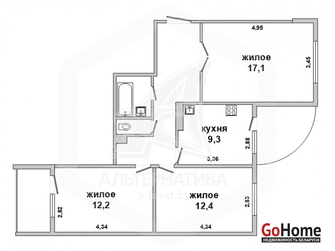 3-комнатная квартира, г. Брест, б-р Космонавтов, 1978 г.п., 5 / 9 кирпич, 69,8 / 66,6 / 40,8, / 7,51, санузел раздельный, лоджия застеклена, балкон застеклен, стеклопакеты, в санузле заменена сантехника, домофон. В кварт…