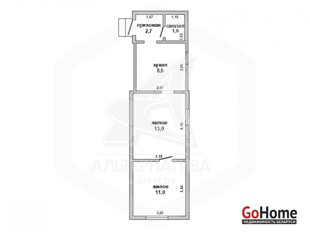 Квартира в блокированном жилом доме. 1958 г.п. Реконструкция 2020 г. 1 этаж. Общ.СНБ - 37,2 кв.м, общ.- 37,2 кв.м, жил.- 24,0 кв.м, кух.- 8,6 кв.м. 2 комнаты.