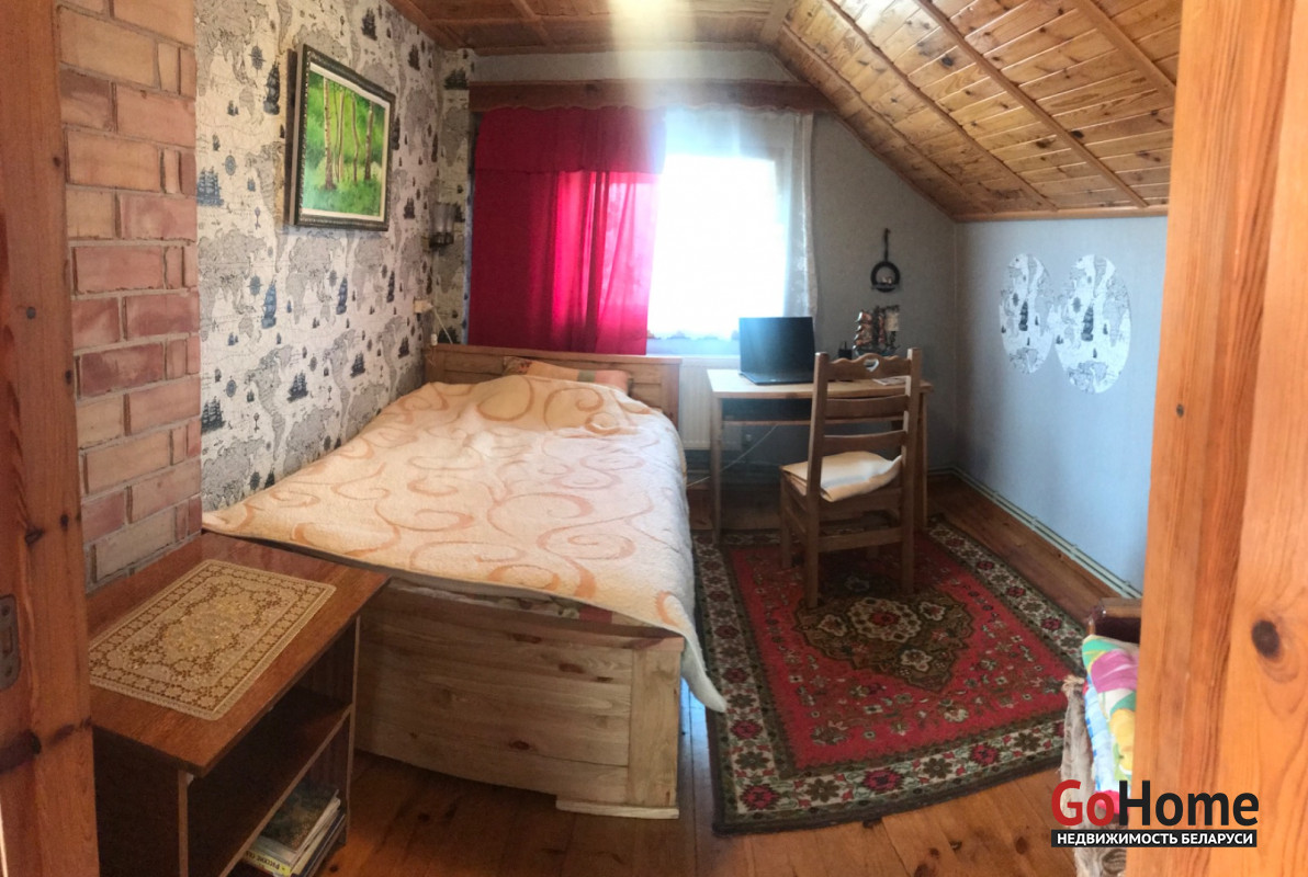 Дом расположен в д. Бычь. 7 км. от города, асфальт до самой калитки. . Добротный и уютный дом в 2 этажа из нового и сухого деревянного сруба обложенный кирпичом, отделка всего дома внутри-исключительно из натурального дерева, лестница из ясеня, функциональный камин. Весь участок с большим молодым и ухоженным плодовым садом, питомником винограда, ежевики и орешником. Очень тихое место. 2 гаража, мастерская, большой сарай из блоков, баня, летняя кухня с настоящей Русской печью, подвал для хранения груш и яблок, колодец. Газ, новое отопление. Введено 380 вольт. Спутниковое тв, телефон, интернет. Более 80 молодых и плодоносящих яблонь и груш редких и адаптированных сортов. В 500-тах метрах озеро и лес. Больше фото и видео по запросу.