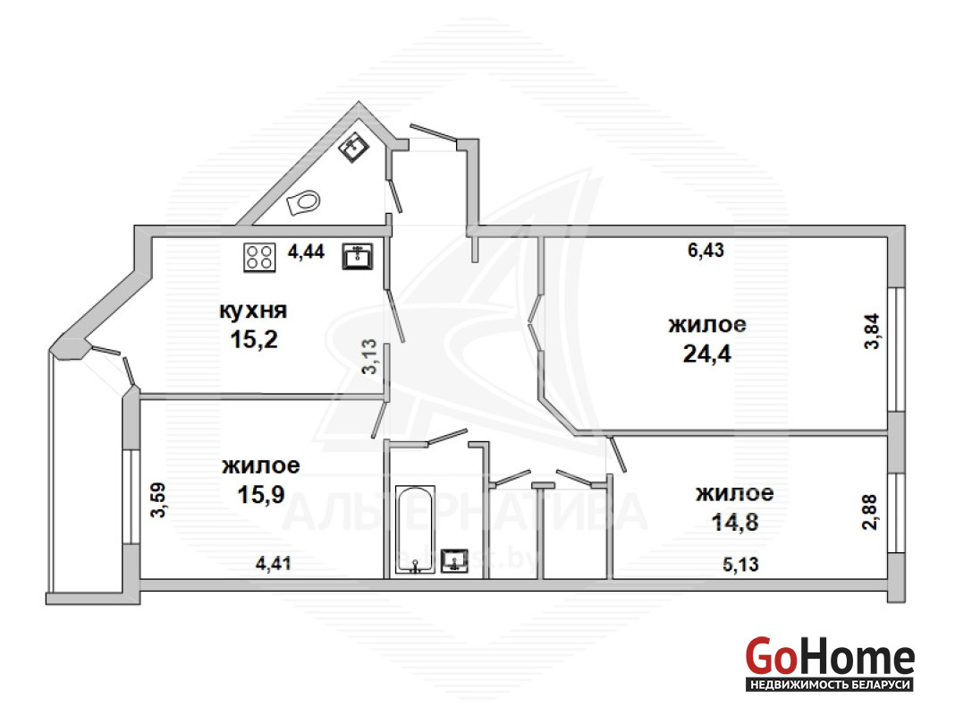 3-комнатная квартира, г. Брест, ул. Халтурина, 2003 г.п., 3 / 9 кирпич, 99,4 / 96,2 / 41,1 / 15,2, санузел раздельный, лоджия застеклена, потолки - 2,64 м, домофон. Шкаф (в прихожей). Лот - 233008