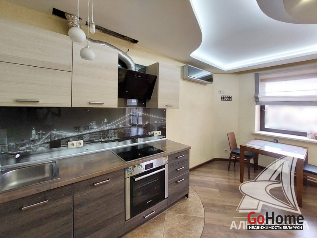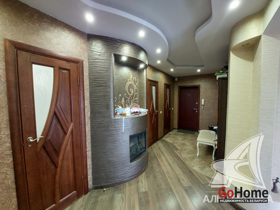 3-комнатная квартира, г. Брест, ул. Стафеева, 2009 г.п., 5 / 13 ж/б каркас + блок, 91,8 / 91,8 / 56,3 / 11,5, санузел раздельный, деревянные стеклопакеты и окна во французском стиле (в зале), межкомнатные двери - массив, входная дверь металлическая, многоуровневые потолки из гипсокартона с разноплановой системой освещения (2,66 м), полы - ламинат и плитка (положены на стяжку), стены - венецианская штукатурка, в санузле современная плитка, заменена сантехника, заменен полотенцесушитель, акриловая ванна, инсталляция Grohe, кондиционер, домофон, система видеонаблюдения. Кухонный гарнитур, индукционная варочная поверхность, духовой шкаф, вытяжка, посудомоечная машина, гардеробная, остальная мебель по договоренности. Квартира с индивидуальными дизайнерскими решениями. Чистый подъезд. Пассажирский и грузовой лифты. Во дворе игровая детская площадка, парковка для автомобилей. Лот - 233006