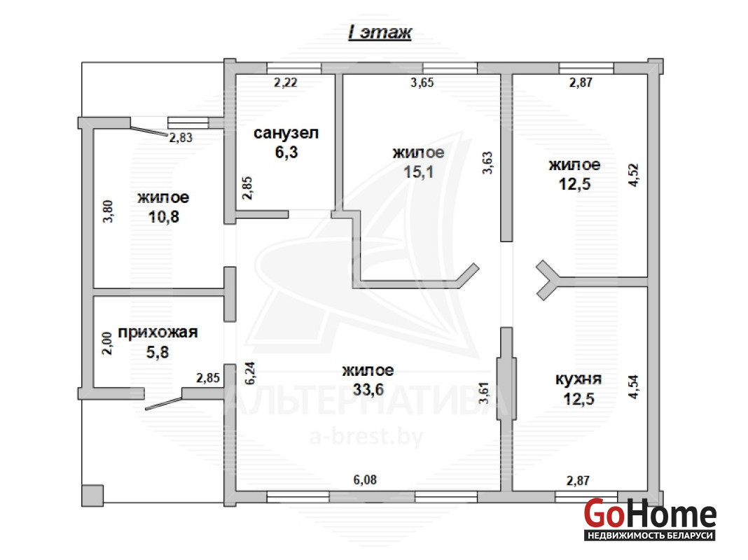 Жилой дом в г.Бресте. 2005 г.п. 1 этаж, цокольный этаж. Общ.СНБ - 191,1 кв.м, общ.- 96,6 кв.м, жил.- 72,0 кв.м, кух.- 12,5 кв.м. 4 комнаты, высота потолка - 2,90 м.