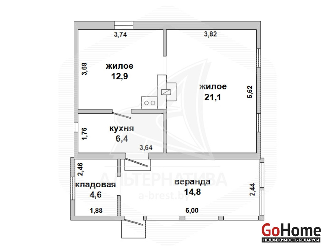 Жилой дом в Брестском р-не. 1962 г.п. 1 этаж. Общ.СНБ - 59,8 кв.м, общ.- 40,4 кв.м, жил.- 34,0 кв.м, кух.- 6,4 кв.м. 2 комнаты, высота потолка - 2,35 м.