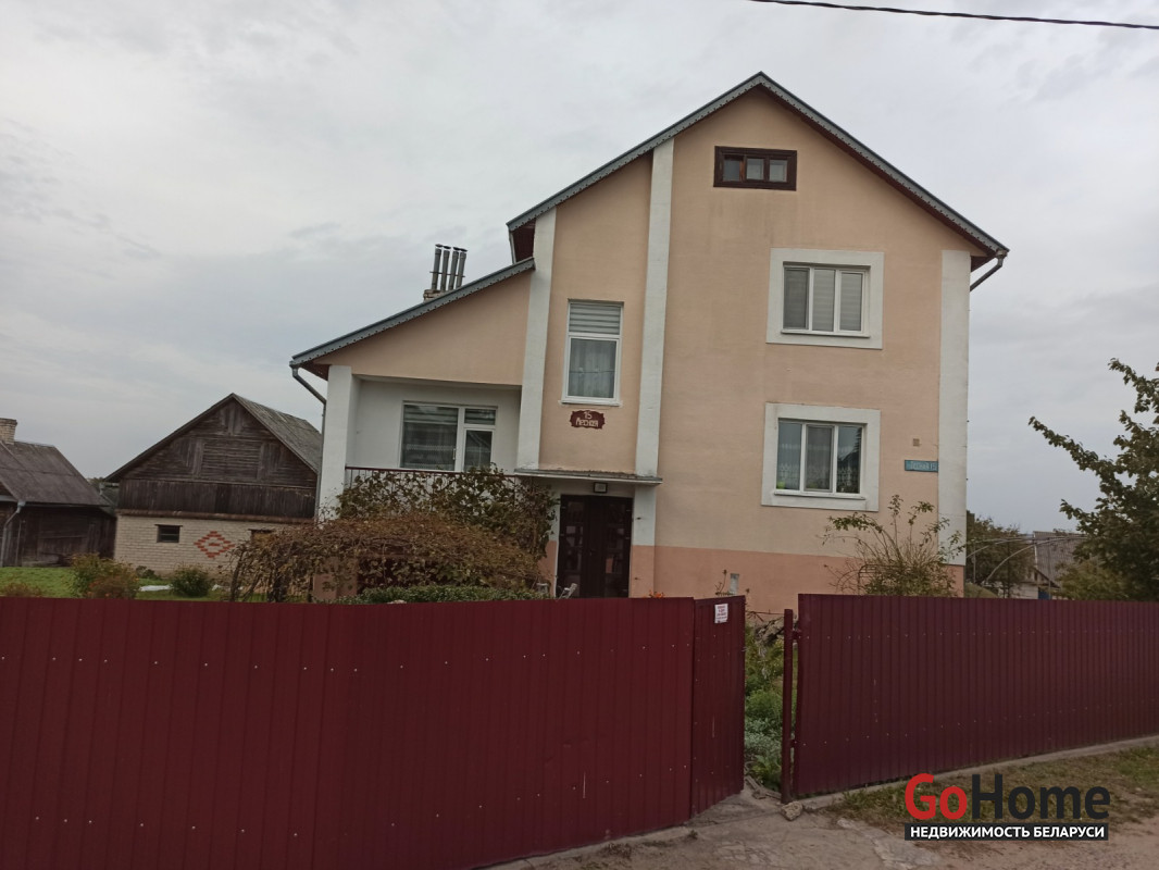 В доме 7 жилых комнат, 2 кухни, 2 туалета, 1 ванная комната, 2 чердака, 2 гаража, кательня, 3 балкона. На участке уличный подвал, 2 сарая, баня. Забор металлический. 1 этаж пол паркет, второй этаж пол ламинат. Везде натяжные потолки. Везде поставлены стеклопакеты, ремонт "Не бабушкин".