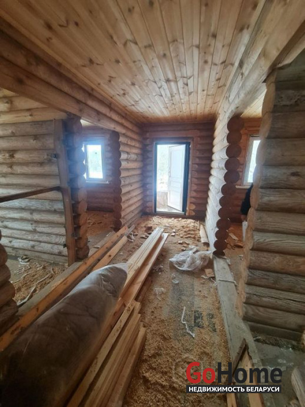 Уединенное тихое место с великолепными пейзажами. Изумительное место для любителей охоты и рыбалки, сбора грибов. Деревня находится в зоне охотничьих угодий Минского лесного хозяйства, рядом несколько мест с платной рыбалкой. Дом из оцилиндрованного бревна, 2021 года постройки площадью 79,5 кв. м. На мансардном этаже предусмотрен балкон с открывающимся живописным видом. Дом строился для себя. Надёжный свайный фундамент (сваи длинной 6 метров), на сваях лежит ростверк и плита. Плодородный грунт снят (в валах на участке), участок выровнен; к участку сделан хороший подъезд. Строение из оцилиндрованного бревна хорошего качества, снаружи обработано антисептиком. Электричество на участке (380 В), проведено до собственного э/столба; введено в дом (не подключено). Вода центральная на участке, подведена до собственного колодца; введена в дом (не подключена). Под канализацию вкопана цистерна 8 м³, выводы для канализации введены в дом. Отопление предусмотрено по проекту электрокотлом, под который выделена мощность с низким тарифом 9 коп за киловатт. В деревне новая электрическая подстанция - что не ограничивает в мощности потребления электричества. Установлены новые пластиковые окна и балконная дверь Брусбокс А70-5, на которые распространяется гарантия производителя 5 лет. Установлена входная металлическая дверь Промет Винтер "Белёный дуб" с терморазрывом и порогом из нержавеющей стали. Участок 15 соток, частная собственность. Есть возможность расширения участка, за счёт примыкающих свободных земель. В трёхстах метрах от дома находится автобусная остановка, автобус ходит 2 раза в день. Автолавка приезжает 3 раза в неделю, е-доставка привозит заказы. 300 метров до красивого озера с бобровыми плотинами и хатами, с хорошей рыбалкой, обрамленное живописными вековыми дубами, за которыми начинается лес, в котором много грибов и ягод. 8 км до аг Раков и его достопримечательностей. Рядом начинается самый крупный лесной массив Беларуси Налибокская пушча. 6 км до аг Волма с зарыбленными прудами и бывшей усадьбой рода Ваньковичей, в 8 км рыболовно-туристические базы.