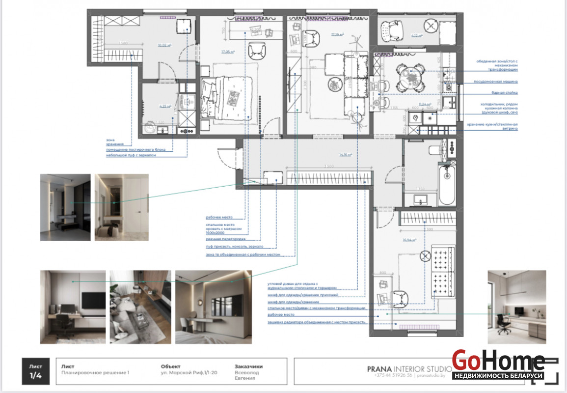 Предлагается к продаже просторная 3-х комнатная квартира общей площадью 98,4 квадратных метра с готовый дизайн проектом от PranaStudio.