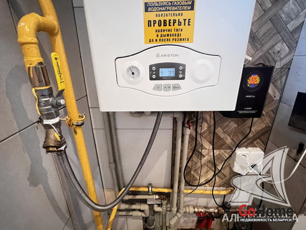 Коммуникации: отопление - газовый котел, газ - централизованный (в доме), водоснабжение - централизованный водопровод, электричество - централизованное, канализация - автономная.