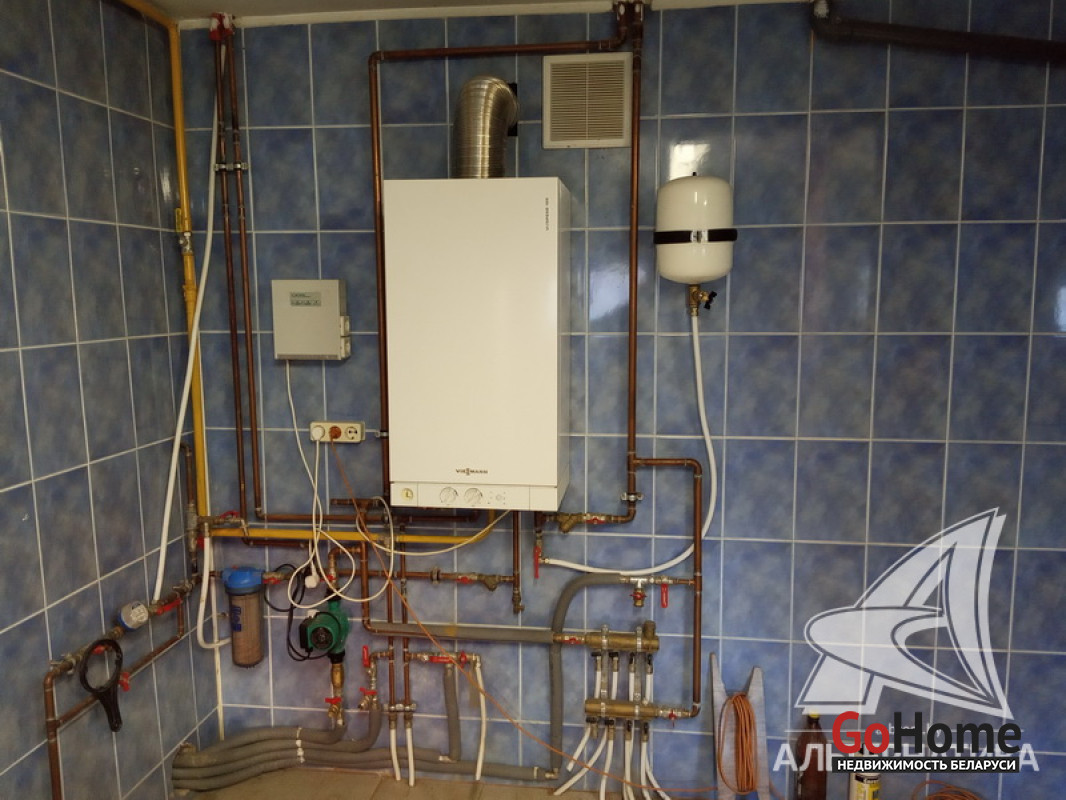 Коммуникации: отопление - газовый котел, газ - централизованный (в доме), водоснабжение - централизованный водопровод, электричество - централизованное, канализация - автономная и централизованная (по улице).