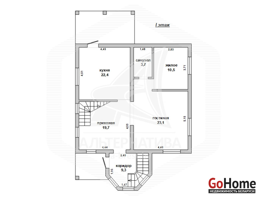 Жилой дом в г.Бресте. 2005 г.п. 1 этаж, мансарда. Общ.СНБ - 257,6 кв.м, общ.- 164,8 кв.м, жил.- 86,0 кв.м, кух.- 22,4 кв.м. 5 комнат, высота потолка - 2,85 м.