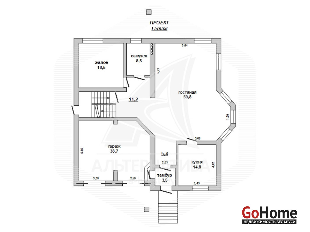 Коробка жилого дома в Брестском р-не.1 этаж, мансарда, цокольный этаж. Общ.СНБ - 325,47 кв.м, общ.- 325,47 кв.м, жил.- 190,87 кв.м, кух.- 14,85 кв.м. 6 комнат, высота потолка - 3,14.
