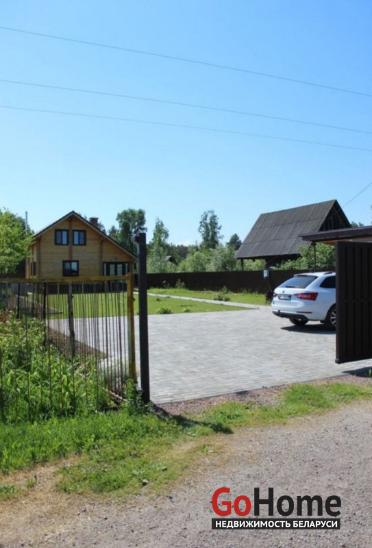 На участке газон, дорожки из тротуарной плитки, паркинг на 4 автомобиля, хоз. постройка возле въездных откатных ворот, забор из металлопрофиля.