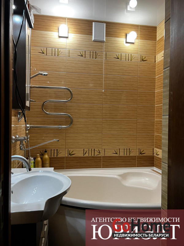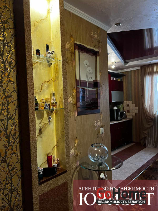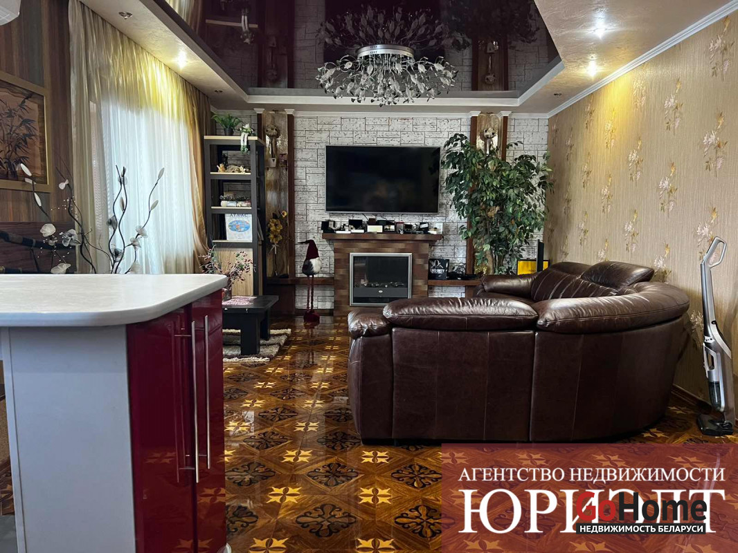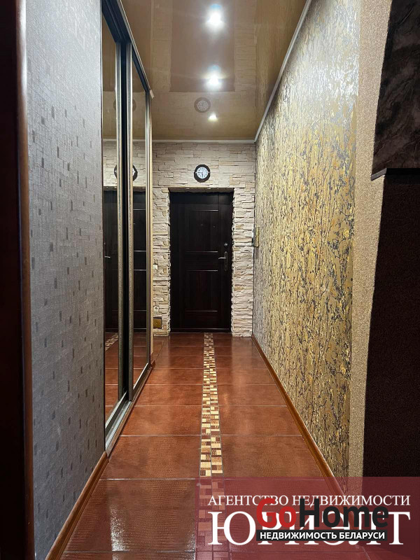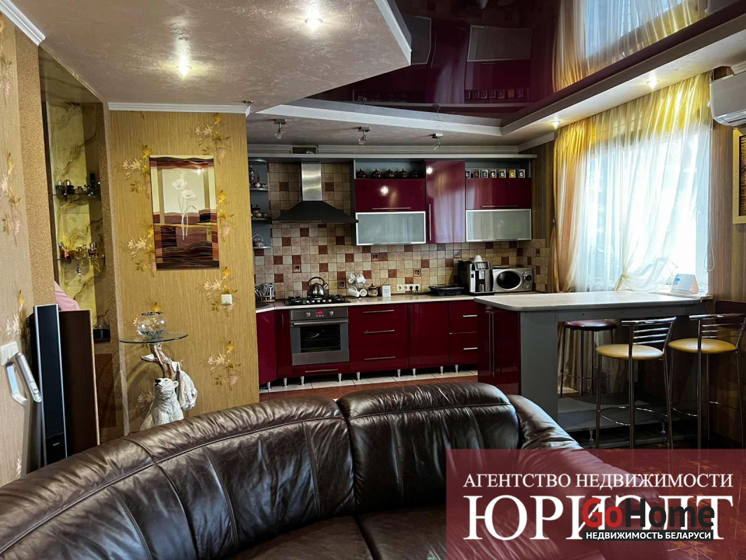 Современная 3-комнатная квартира улучшенной планировки в мкр Ковалево г. Бреста. Квартира площадью 83,9/34,8/33,2 кв.м. находится на 4 этаже 4-этажного кирпичного дома 2009 года постройки. Дом находится на закрытой территории с видеонаблюденинм. В квартире 3 изолированные комнаты :просторная кухня - столовая 33,2 м2 и 2 спальные комнаты, раздельный санузел и застекленная лоджия. Квартира с современным нным дизайнерским ремонтом: полы- лакированная паркетная доска производства Италии, потолки глянцевые разноуровневые, стены оклеенны импортными обоями, для декора использована имитация мрамора и фактурная штукатурка. На окнах установлены 5- камерные окна ПВХ. Входная дверь металлическая, производства Германия, межкомнатные двери из массива ольхи. Санузлы отделаны керамической плиткой современного образца. Кухонный гарнитур полностью укомплектован бытовыми приборами премиум класса : варочная поверхность , духовой шкаф и вытяжка. Приятную уютную атмосферу в гостиной создает электрокамин. В гостиной установлен кондиционер зима -лето.. Также имеется подвальное помещение и велопарковка. Вся необходимая инфраструктура в шаговой доступности. Отличная транспортная развязка.