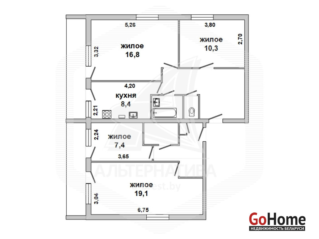 4-комнатная квартира, аг. Остромичи, пер. Московский, 1977 г.п., 2 / 2 кирпич, 91,7 / 84,9 / 53,6 / 8,4, санузел раздельный, две лоджии, сарай, стеклопакеты, межкомнатные двери - массив, входная дверь деревянная, потолки - 2,50 м, полы - ДСП и линолеум, стены оклеены обоями, телефон. Мебель по договоренности. Квартира в жилом состоянии. Квартира расположена на две стороны. Капитальный ремонт дома 2009 г. Лот - 233635