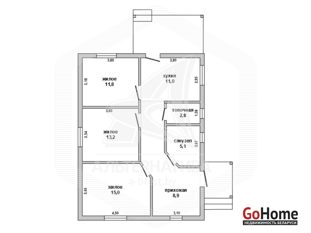 Дачный дом жилого типа в Брестском р-не. 2019 г.п. 1 этаж. Общ.СНБ - 130,0 кв.м, общ.- 130, кв.м, жил.- 40,3 кв.м, кух.- 11,0 кв.м. 3 комнаты.