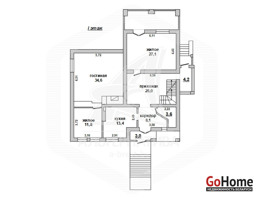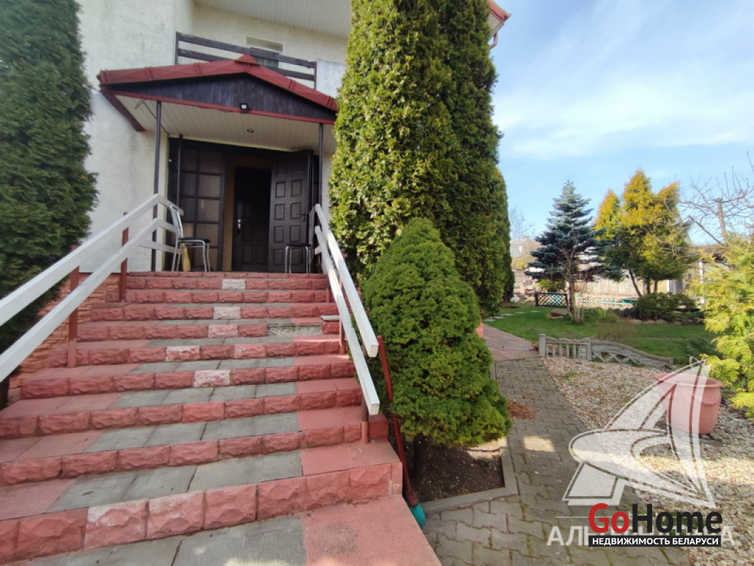 Жилой дом в Брестском р-не. 1994 г.п. 2 этажа. Общ.СНБ - 381,7 кв.м, общ.- 182,7 кв.м, жил.- 88,4 кв.м, кух.- 13,4 кв.м. 4 комнаты, высота потолка - 2,78 м.