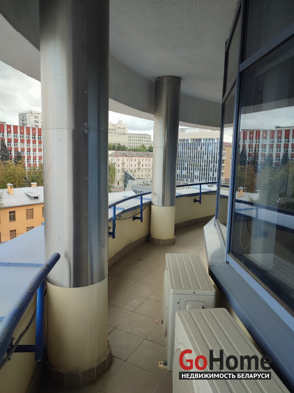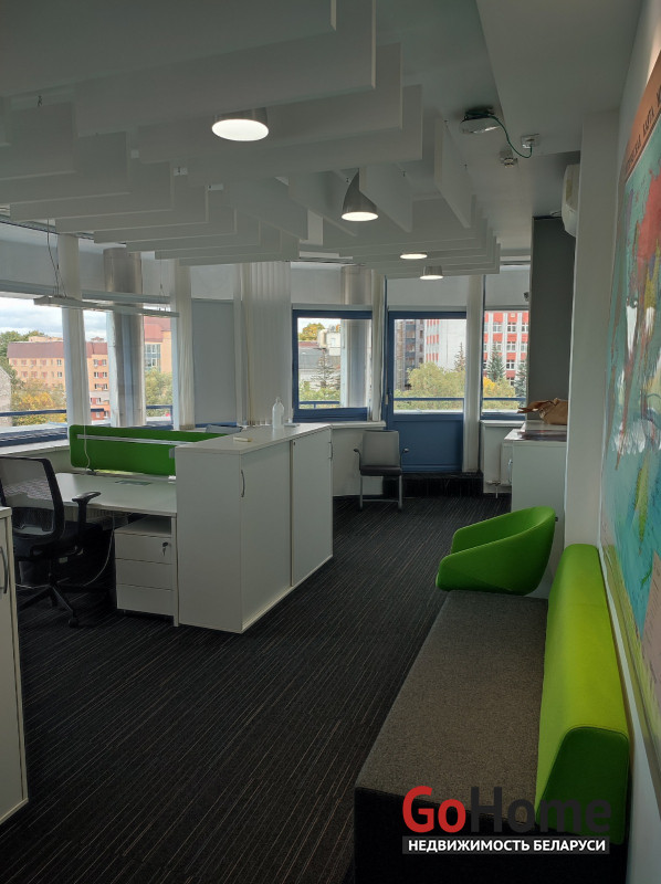 Планировка «open-space» (при необходимости возможна перегородка), выделена 1 комната - переговоров, отличный ремонт, офис полностью оборудован. Шумопоглощающие потолок и пол. Все сделано для комфортной и нескучной работы. Санузел, душ, есть большой балкон (выходит на ул.Немига).
