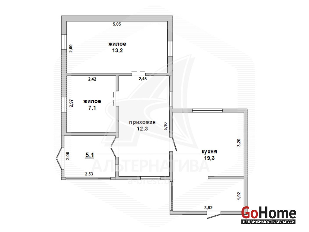 Дом под снос в Брестском р-не. 1974 г.п. 1 этаж. Общ.СНБ - 57,0 кв.м, общ.- 52,0 кв.м, жил.- 20,4 кв.м, кух.- 19,3 кв.м. 2 комнаты, высота потолка - 2,16 м.
