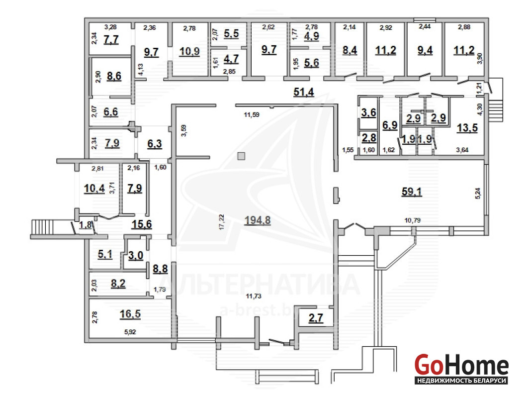 Здание нежилое (назначение - здание специализированное розничной торговли) в аренду в районе Дубровка города Бреста общей площадью 620,6 кв.м. Отдельно стоящее капитальное строение с прилегающей территорией. Состоит из 2 (двух) проходных помещений (194,8 + 59,1 кв.м), а также административных, складские и подсобных помещений разной площади. Высота потолков - 2,7 м. Есть погрузочно - разгрузочная рампа. Все центральные коммуникации, в т.ч. собственный теплоузел. Установлены индивидуальные приборы учета электроэнергии, водоснабжения и тепла, оборудована приточно - вытяжная вентиляция. Земельный участок общей площадью 0,1542 га предоставлен собственнику в постоянное пользование для обслуживания здания. Территория огорожена бетонным забором, парковка перед зданием. Цена указана с НДС. Рассматриваются все варианты. Лот - 230062A