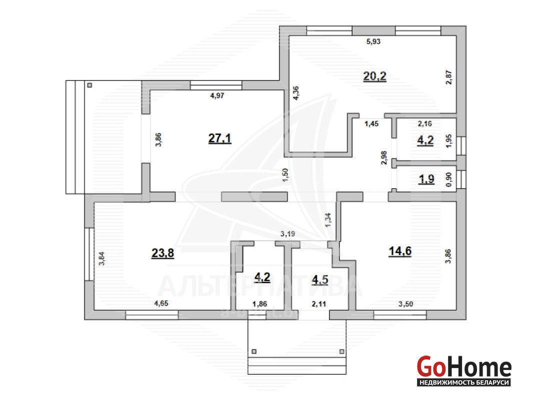 Коробка жилого дома в Брестском р-не. 2022 г.п. 1 этаж. Общ.СНБ - 133,0 кв.м, общ.- 111,5 кв.м, жил.- 61,9 кв.м, кух.- 23,8 кв.м. 3 комнаты, высота потолка - 2,92 м.