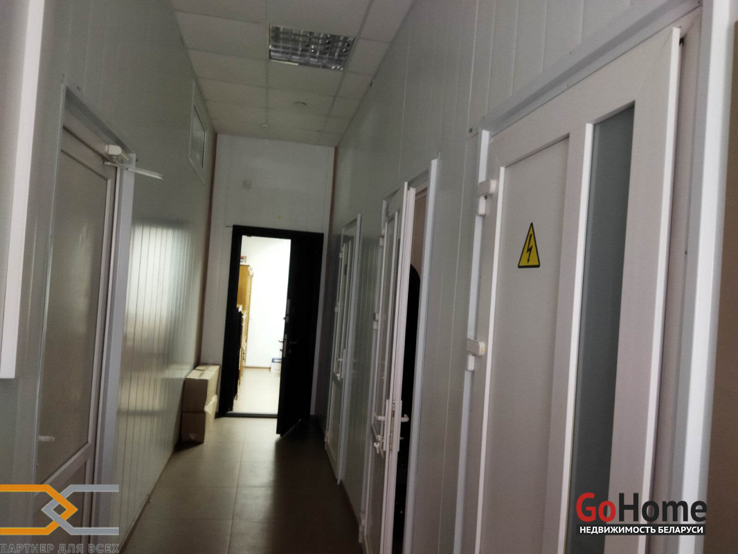 Площадь здания (сэндвич панели) составляет 367.4 кв.м (высота 3м), которое включает в себя: торговый зал, отапливаемый склад, коридор, 2 кабинета и санузел. В помещение подведены центральные водоснабжение и канализация, отопление - котел на твердом топливе.