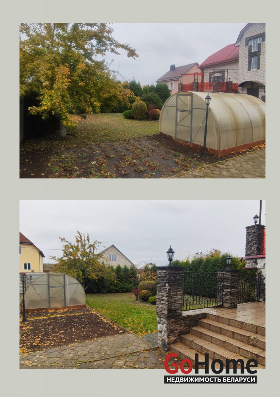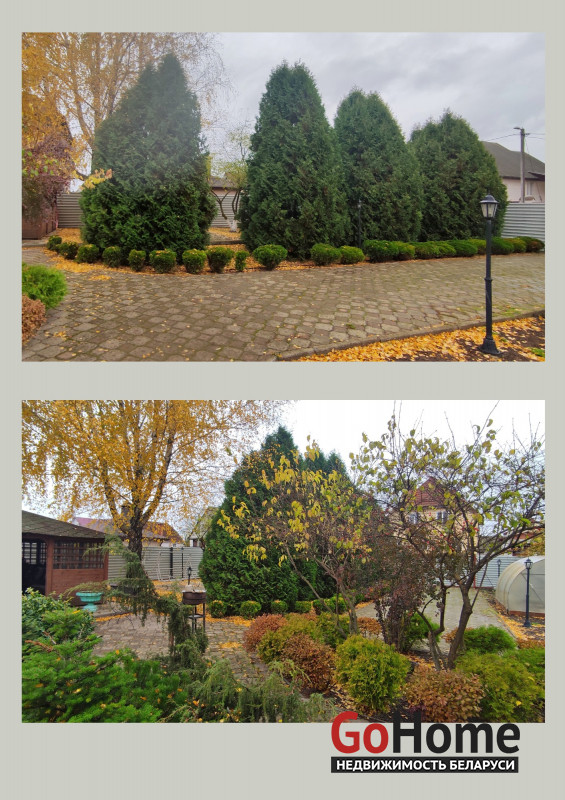 Ухоженный, благоустроенный участок 11 соток - ландшафтный дизайн, усажен экзотическими растениями, растут красивые массивные туи, ест фруктовые деревья (яблони, груши), небольшая часть территории выделена под огород, есть теплица. На участке сделан пруд для рыб, беседка для отдыха, гараж.