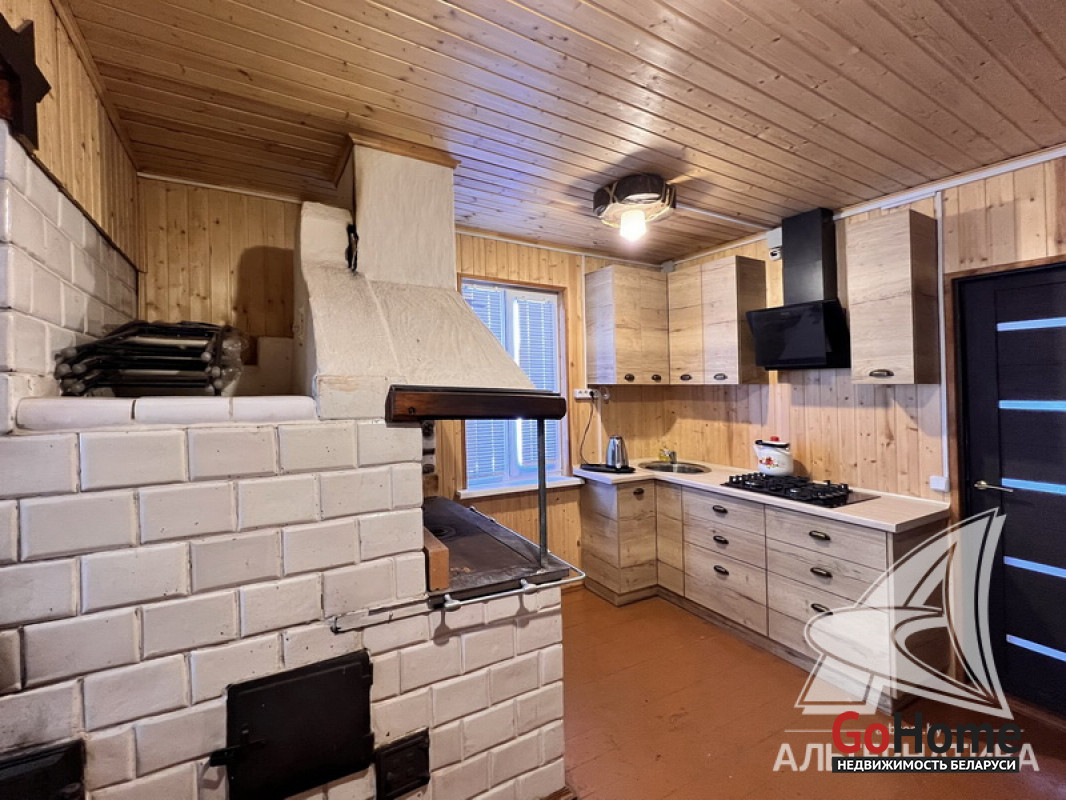 Жилой дом в Каменецком р-не. 1 этаж. Общ.СНБ - 59,9 кв.м, общ.- 42,4 кв.м, жил.- 32,8 кв.м, кух.- 9,6 кв.м. 3 комнаты, высота потолка - 2,47 м.Стены: материал - строительный брус; утепление - минеральная вата; отделка фасада - блок-хаус, имитация бруса. Кровля: шифер. Фундамент: ленточный монолитный; материал - бетон.Коммуникации: отопление - печь, водоснабжение - скважина, электричество - централизованное, канализация - автономная. Хоз.постройки: баня, гостевые дома, беседка, дровница. Участок - 0,2112 га. Лот - 940010