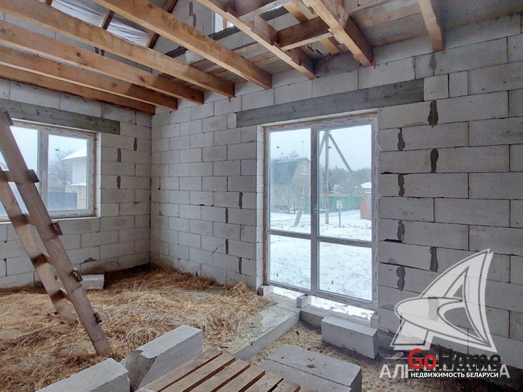 Коробка дачного дома жилого типа в Брестском р-не. 2022 г.п. 1 этаж, мансарда. Общ.СНБ ~ 150,0 кв.м, общ.~ 140,0 кв.м, 4 комнаты.