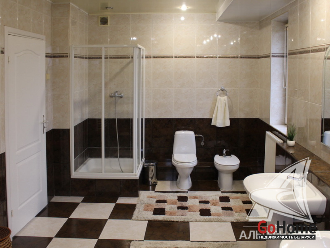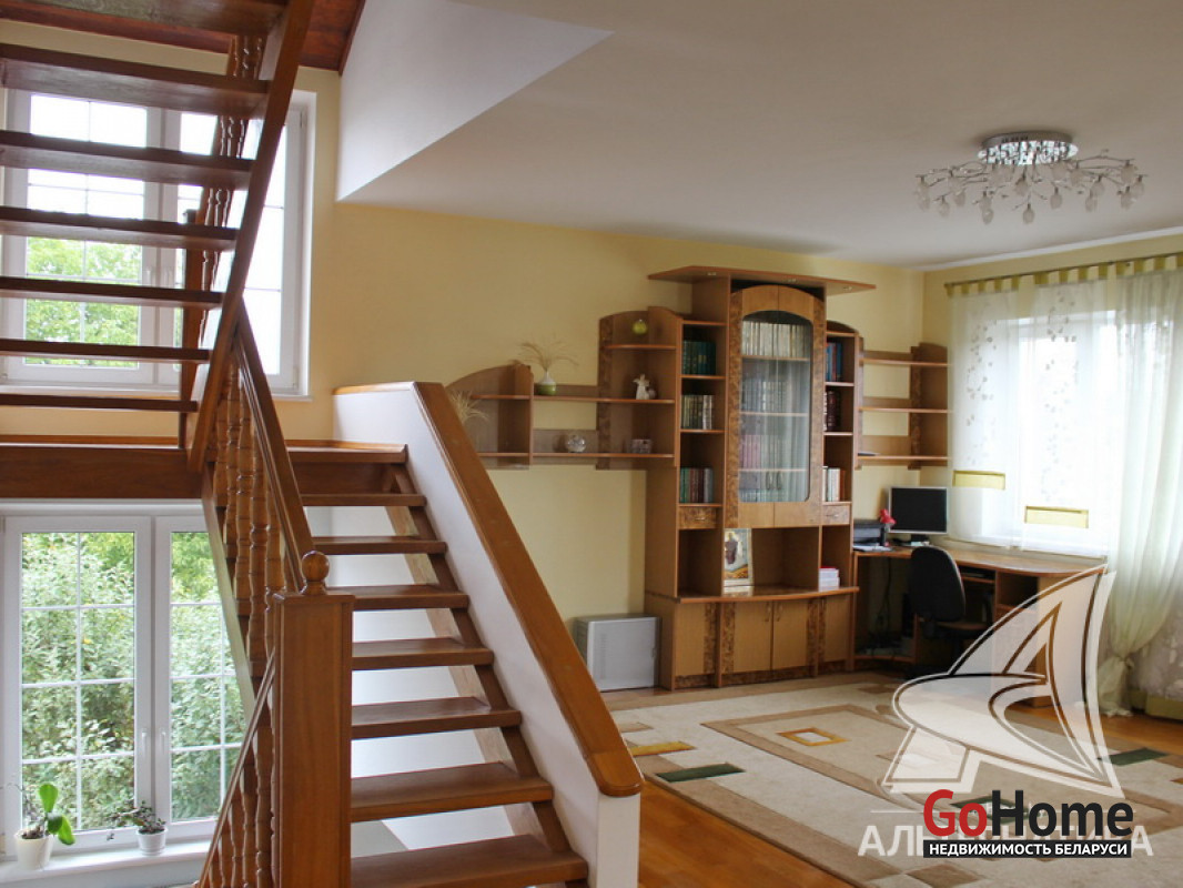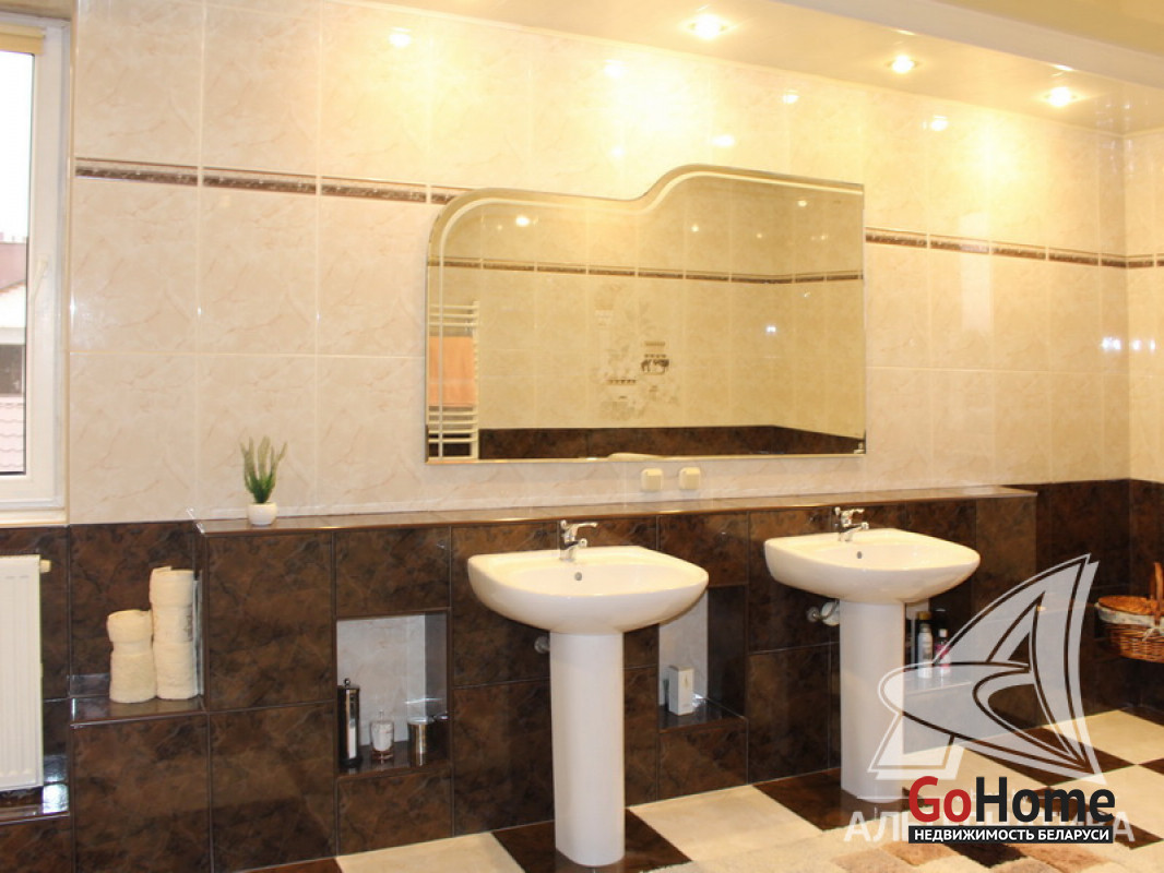 Жилой дом в г.Кобрине. 2004 г.п. 2 этажа, цокольный этаж. Общ.СНБ - 294,6 кв.м, общ.- 290,6 кв.м, жил.- 69,4 кв.м, кух.- 23,7 кв.м. 3 комнаты, высота потолка - 2,78 м.