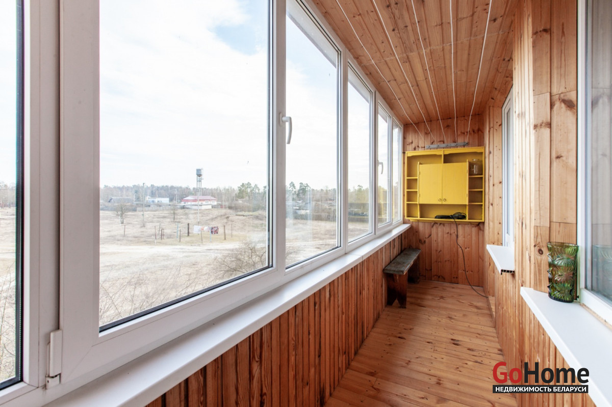 • Балкон обшит выгонкой, застеклен (окна ПВХ)