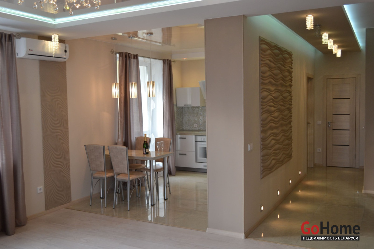 Современная большая двухкомнатная квартира на 18 этаже 24 этажной новостройки в центре города.