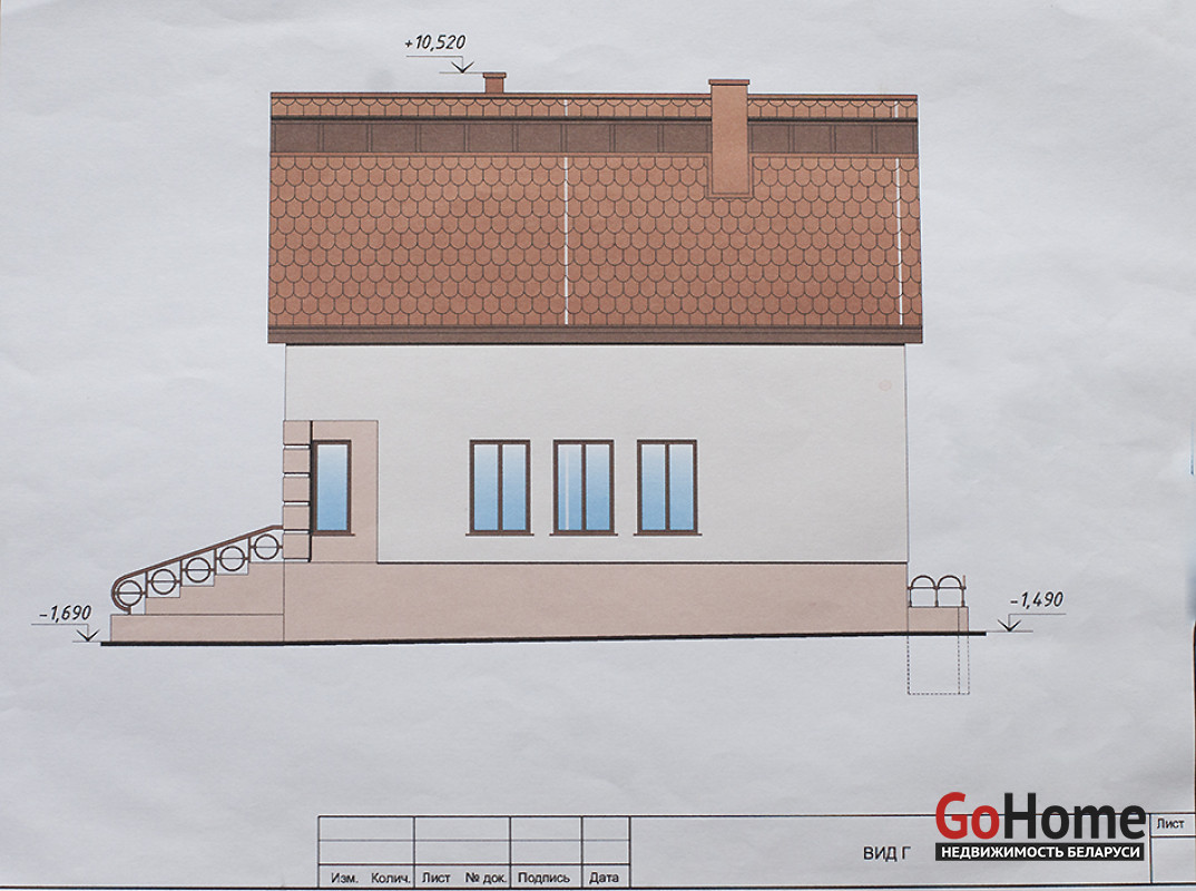 Дом кирпичный под черепичной крышей, без отделки. Два этажа + цокольный, общ площадь 311,7 м. Сделана гидроизоляция фундамента, фундамент утеплен. Второй этаж полностью оштукатурен, электричество разведено под штукатуркой. Готовый утвержденный проект.