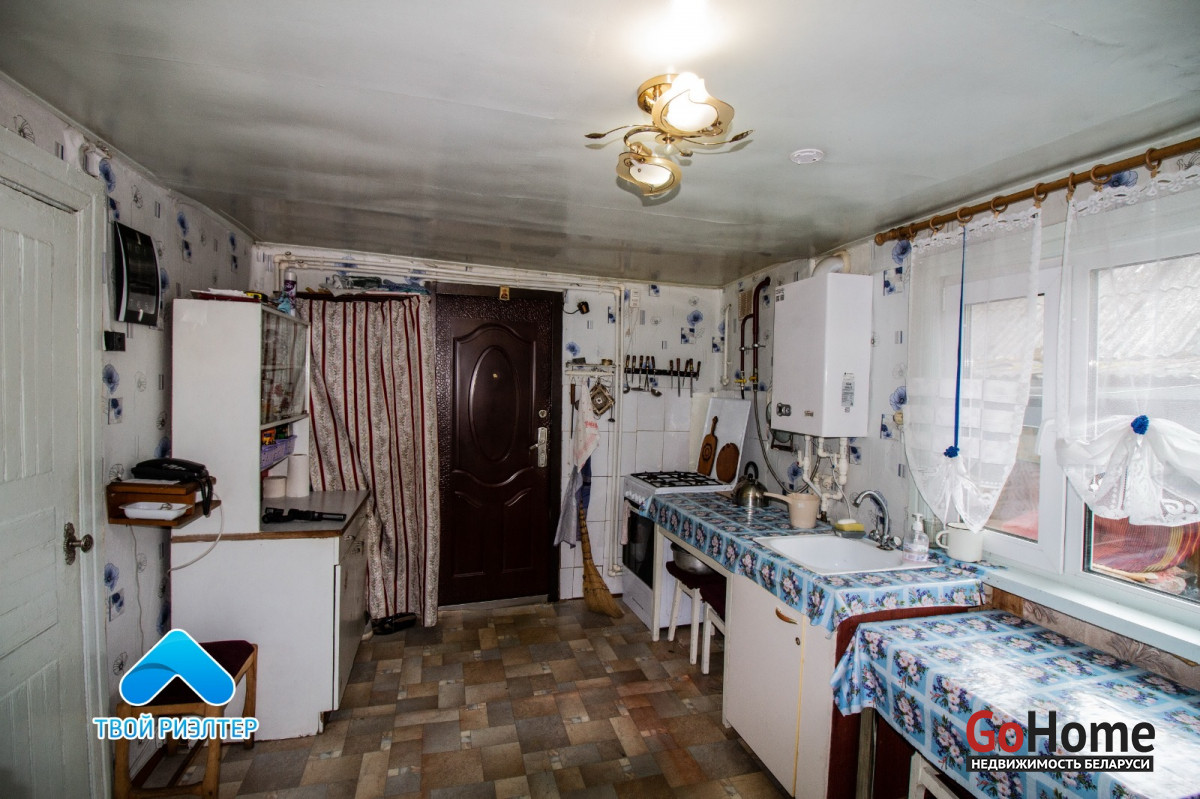 Продаётся часть дома в жилом состоянии площадью по СНБ 65,3 кв.м. Окна ПВХ, входная металлическая дверь, на полу ламинат, ДСП. Есть сарай, погреб. Все коммуникации - газ, электричество о доме, вода в доме (центральный водопровод), электроводонагреватель, отопление -газовый котёл, санузел на улице.