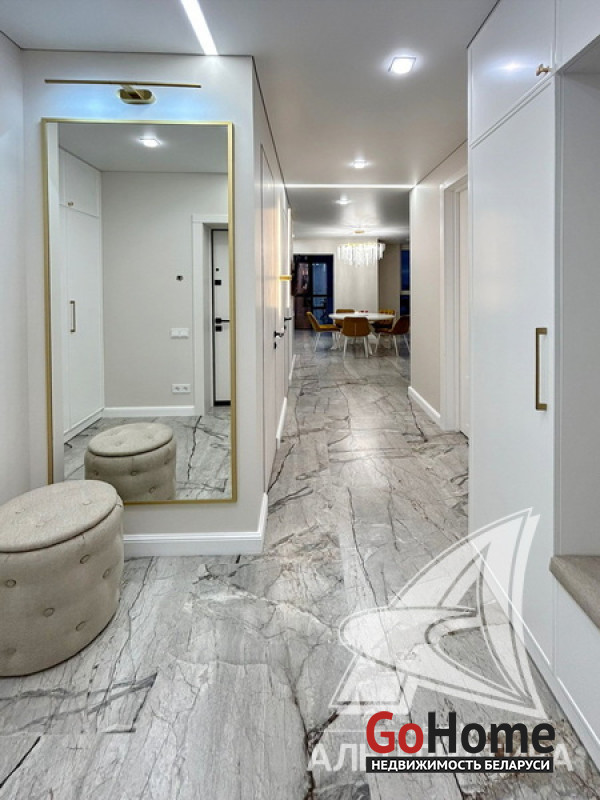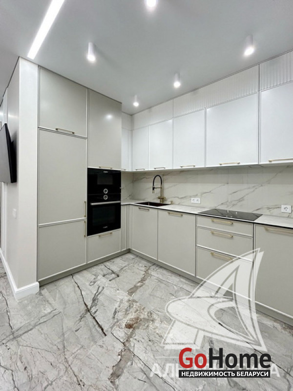 3-комнатная квартира, г. Брест, ул. Гоголя,2023 г.п., 13 / 18 ж/б каркас + блок, 87,8 / 81,5 / 50,4 / 10,6, санузел раздельный, две лоджии застеклены, стеклопакеты, межкомнатные двери скрытого монтажа, полы - ламинат (Чехия) и плитка Kerama marazzi, есть подогрев пола (в кухне, на лоджии), установлены фильтры очистки воды, установлен бойлер, кондиционер, домофон. Встроенная мебель и техника BOSCH (варочная поверхность, духовой шкаф, вытяжка, микроволновая печь, посудомоечная машина, стиральная машина), сушильная машина, встроенный холодильник. Квартира с индивидуальными дизайнерскими решениями. Пассажирский и грузовой лифты. Хороший торг! Лот - 240557