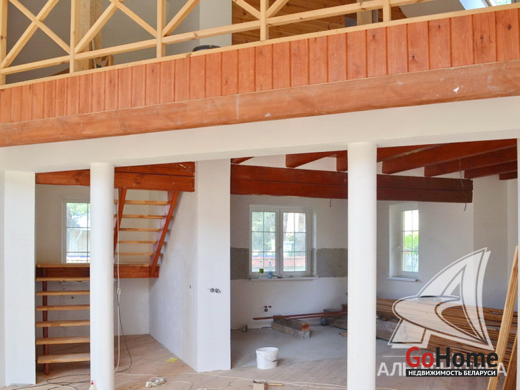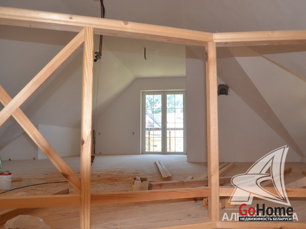 Дом под чистовую отделку в Брестском р-не. 2022 г.п. 1 этаж, мансарда. Общ.СНБ - 238,1 кв.м, общ.- 236,6 кв.м, жил.- 79,0 кв.м, кух.- 13,4 кв.м. 5 комнат, высота потолка - 2,90 м.