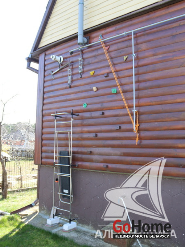 Стены: материал - силикатный кирпич; отделка фасада - блок-хаус. Кровля: шифер. Фундамент: ленточный сборный; материал - блок ФБС.