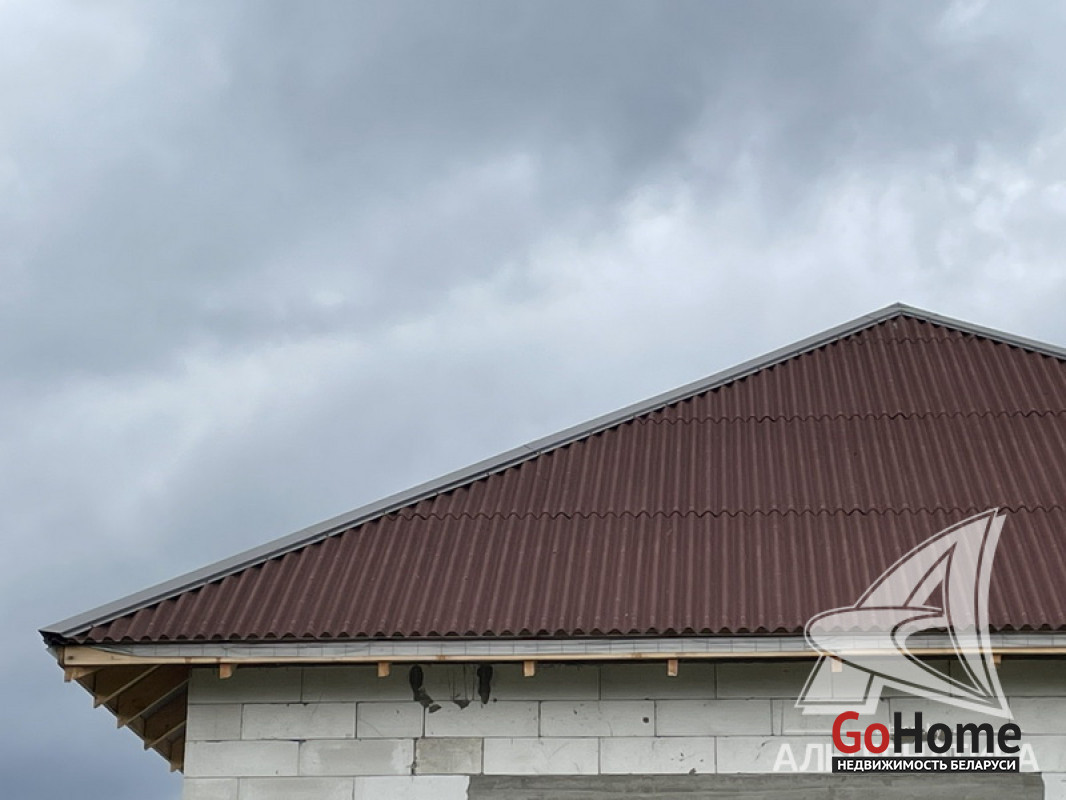 Стены: материал - газосиликатный блок. Кровля: еврошивер (ондулин). Фундамент: ленточный монолитный; материал - бетон; подушка - бетонная.