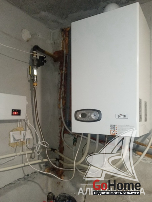 Коммуникации: отопление - газовый котел, газ - централизованный (в доме), водоснабжение - централизованный водопровод, электричество - централизованное, канализация - централизованная.